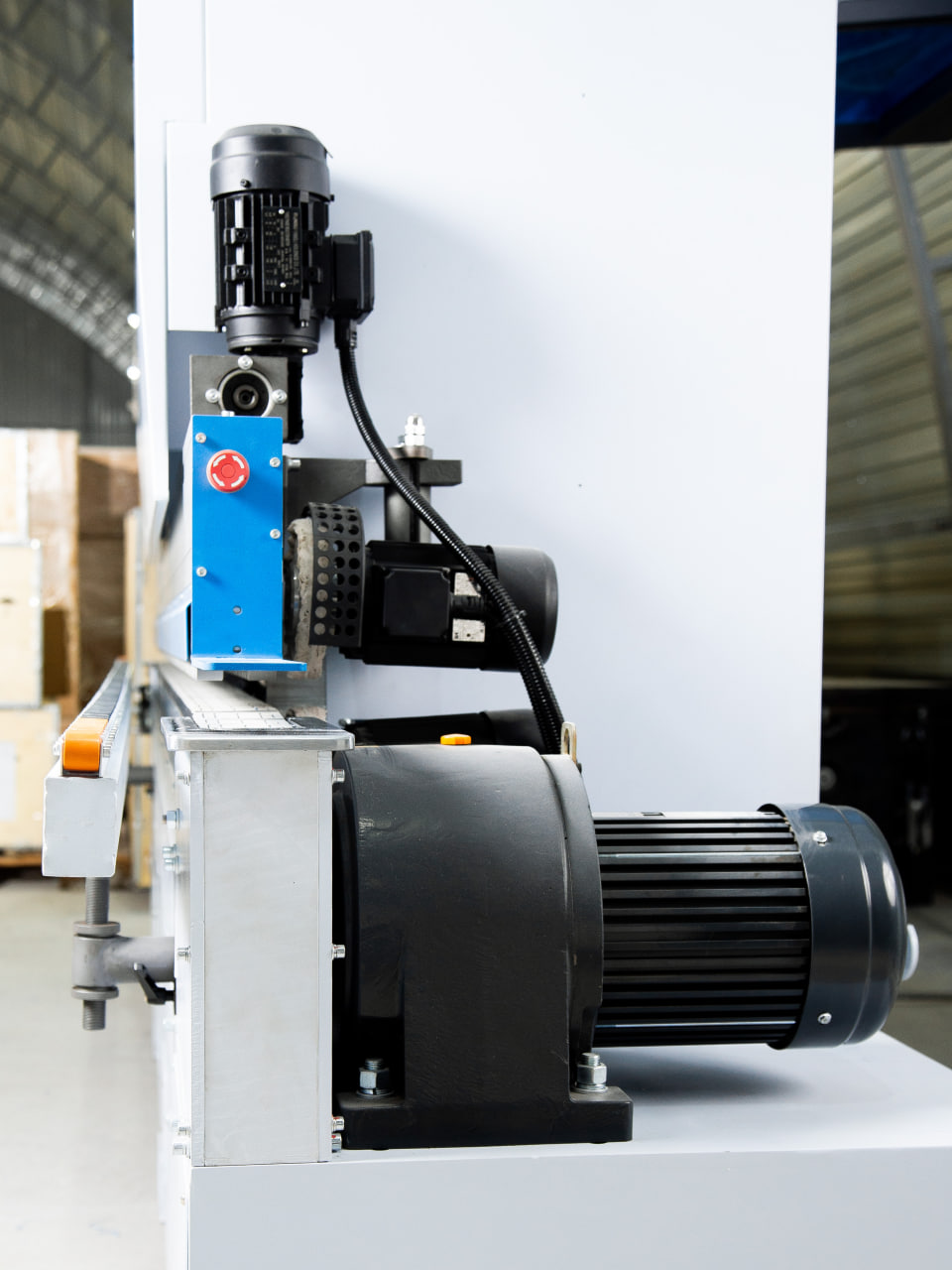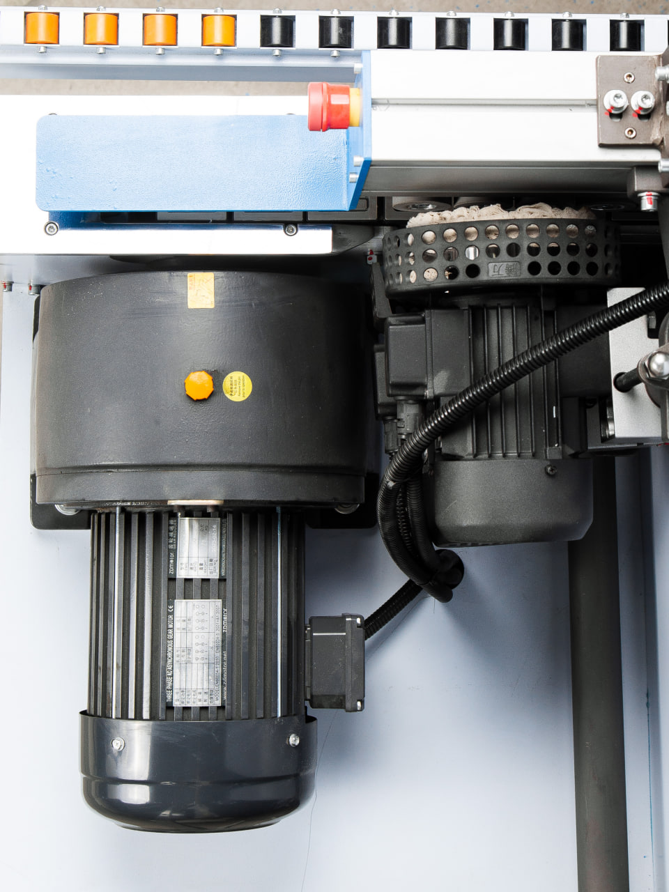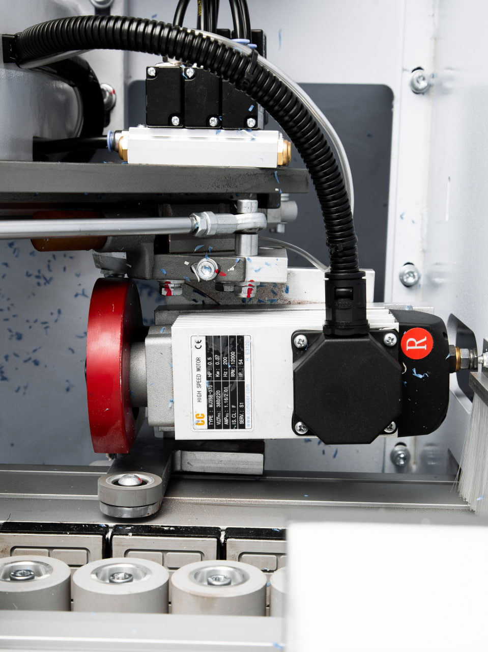 Надежный редуктор приводится во вращение эл. двигателем 2,2 кВт и позволяет развивать скорость до 23 м/мин. Система направляющих позволяет точно и без вибраций перемещать детали относительно узлов обработки.