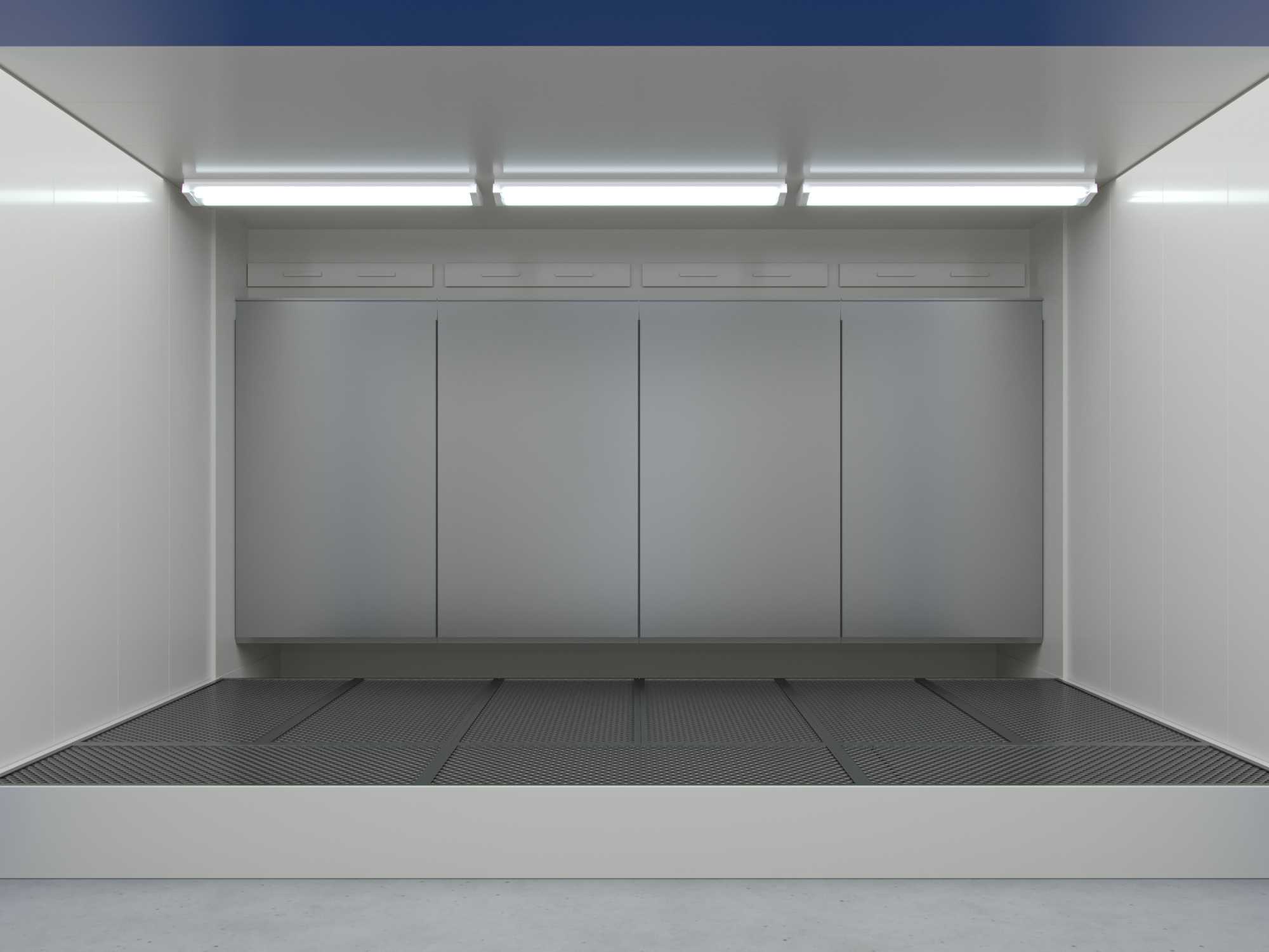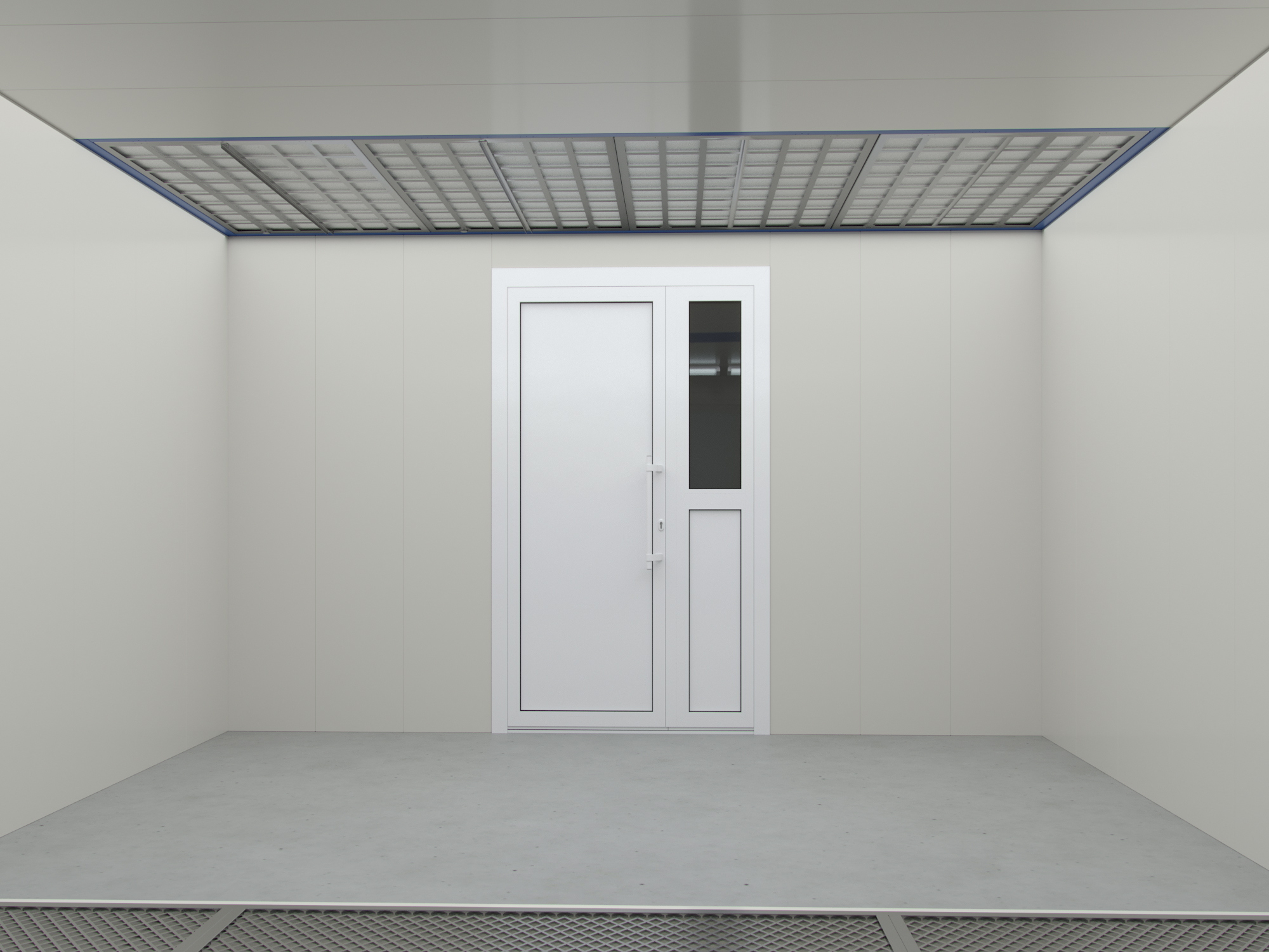 «Чистая комната» конструктивно представляет собой герметичную камеру, в которой осуществляется обработка поверхностей под воздействием высокого давления. Приточный воздух проходит через систему предварительной и второстепенной фильтрации.
