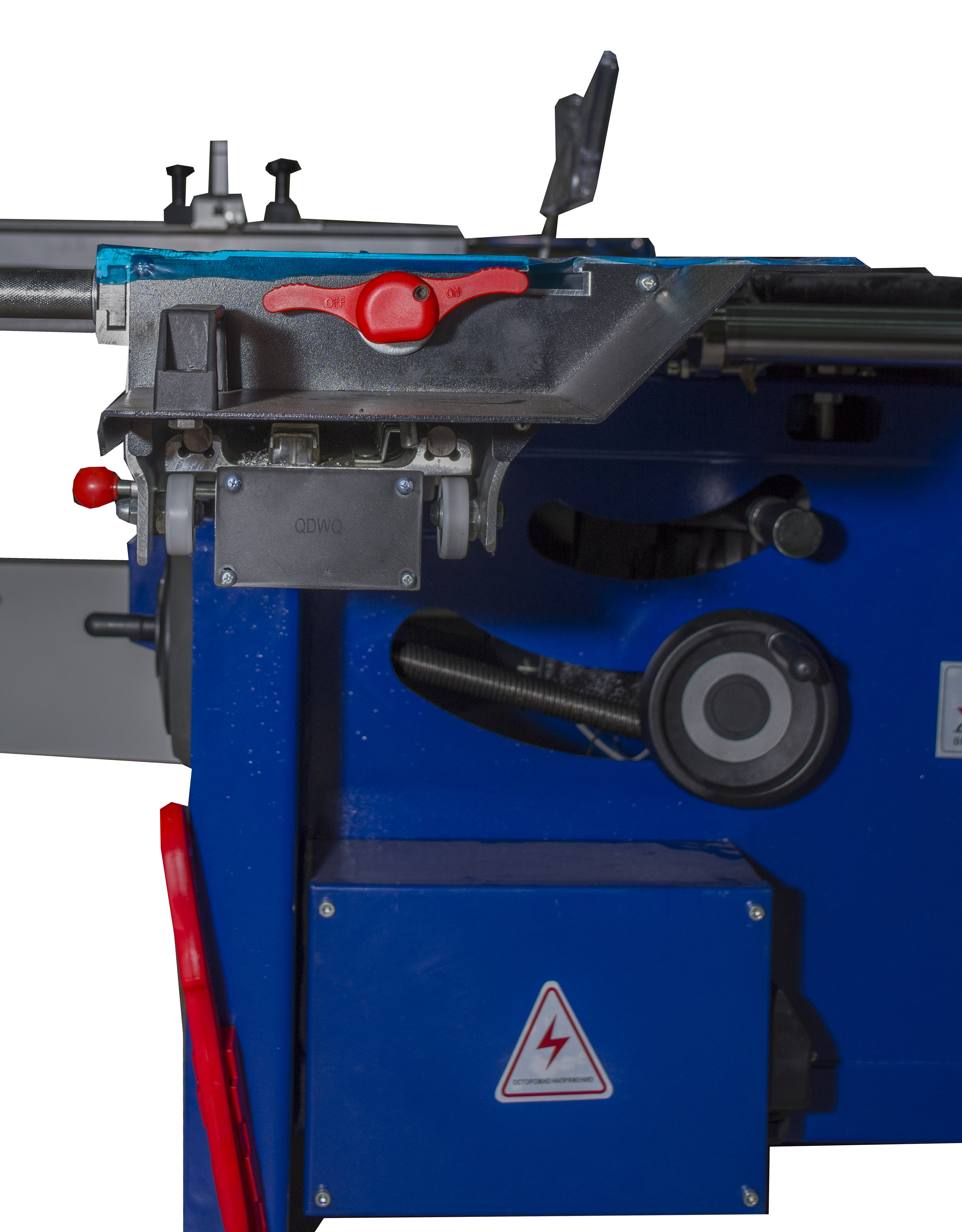 Маховик угла наклона пильного узла находится на лицевой части станка. Маховик подъема-опускания находится сбоку.