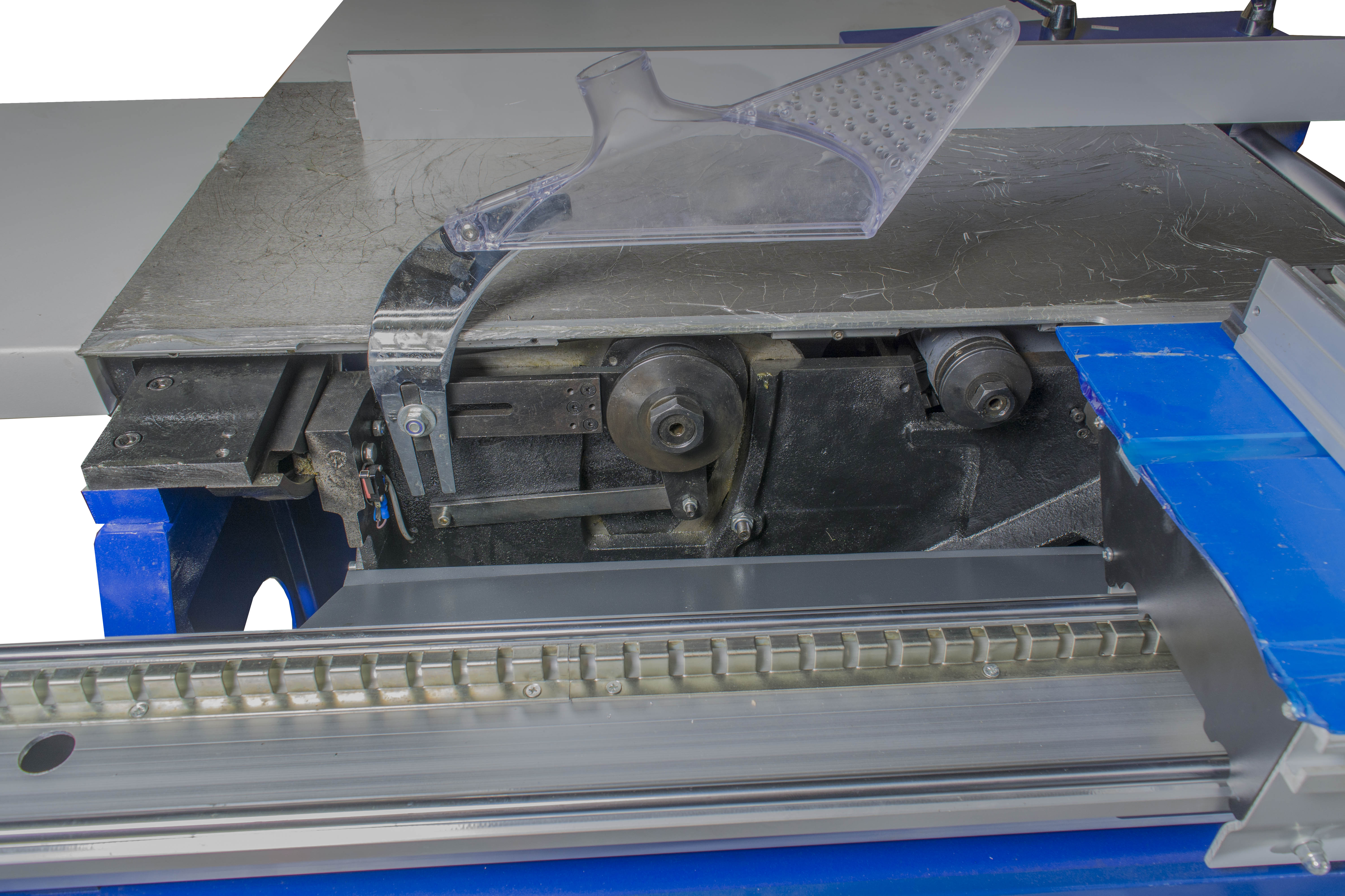 Пильный узел жестко смонтирован со станиной станка, что существенно снижает вибрацию узлов.
