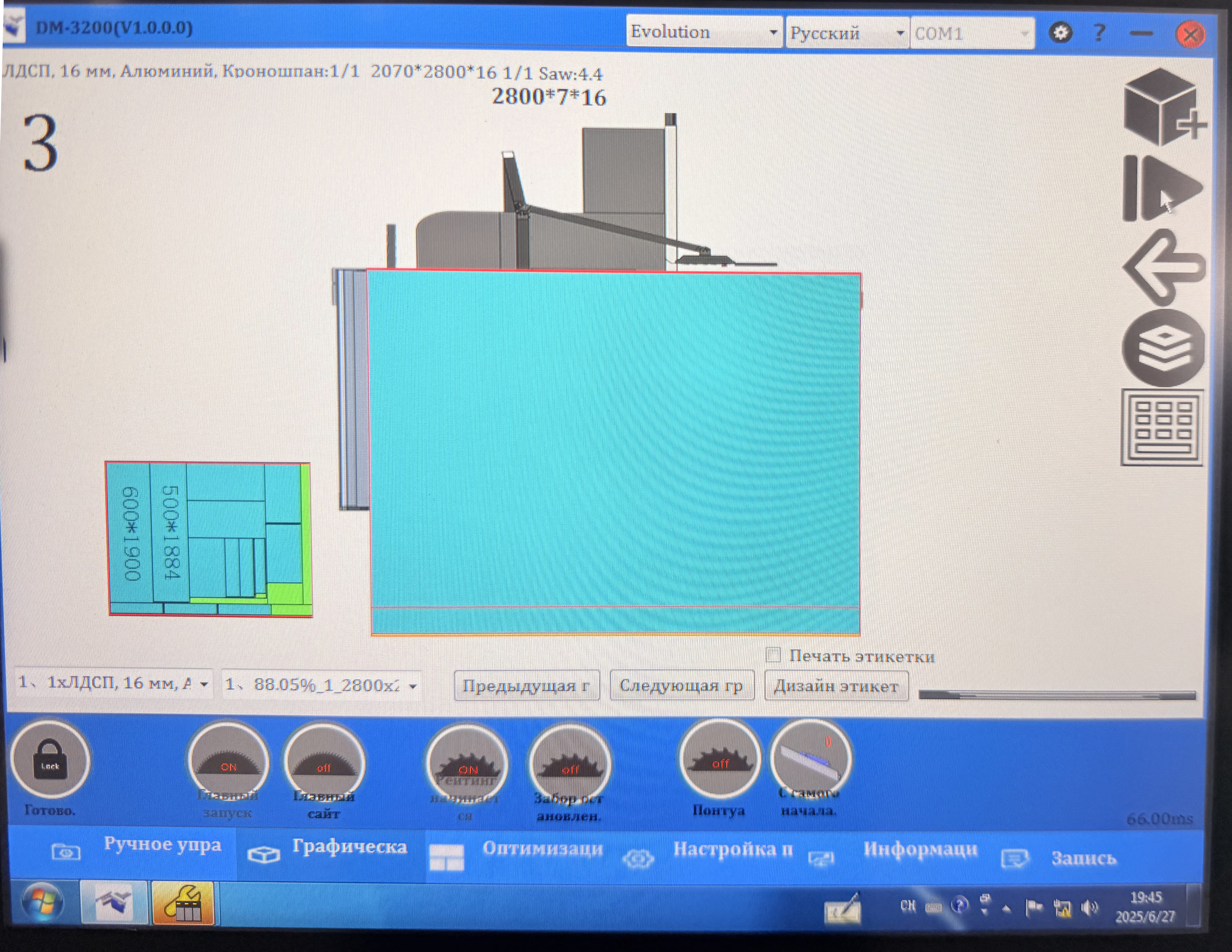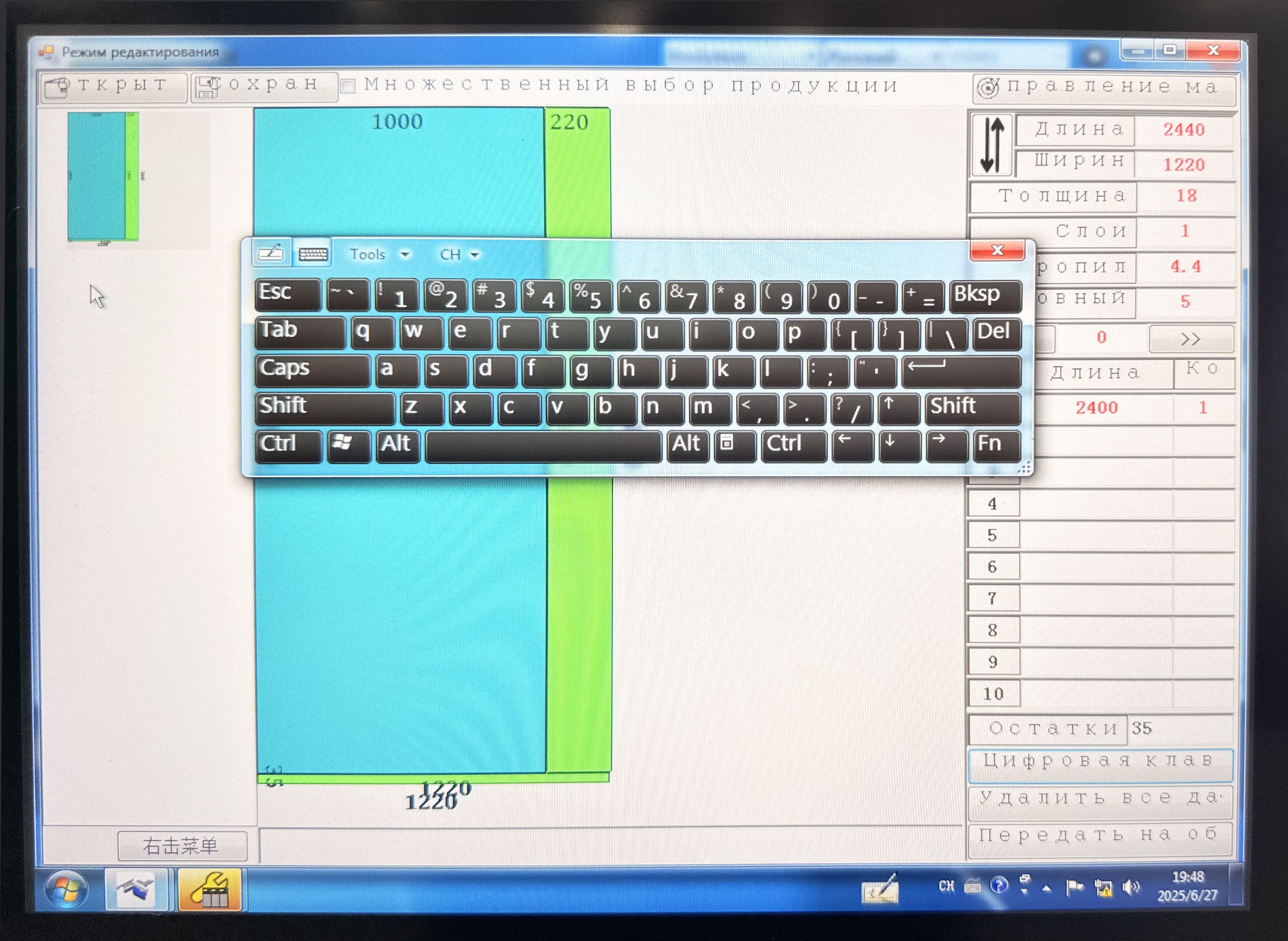 Если вы хотите создавать карты раскроя вручную, прямо на компьютере станка, то для этого уже в базовой комплектации предусмотрено специальное программное обеспечение.