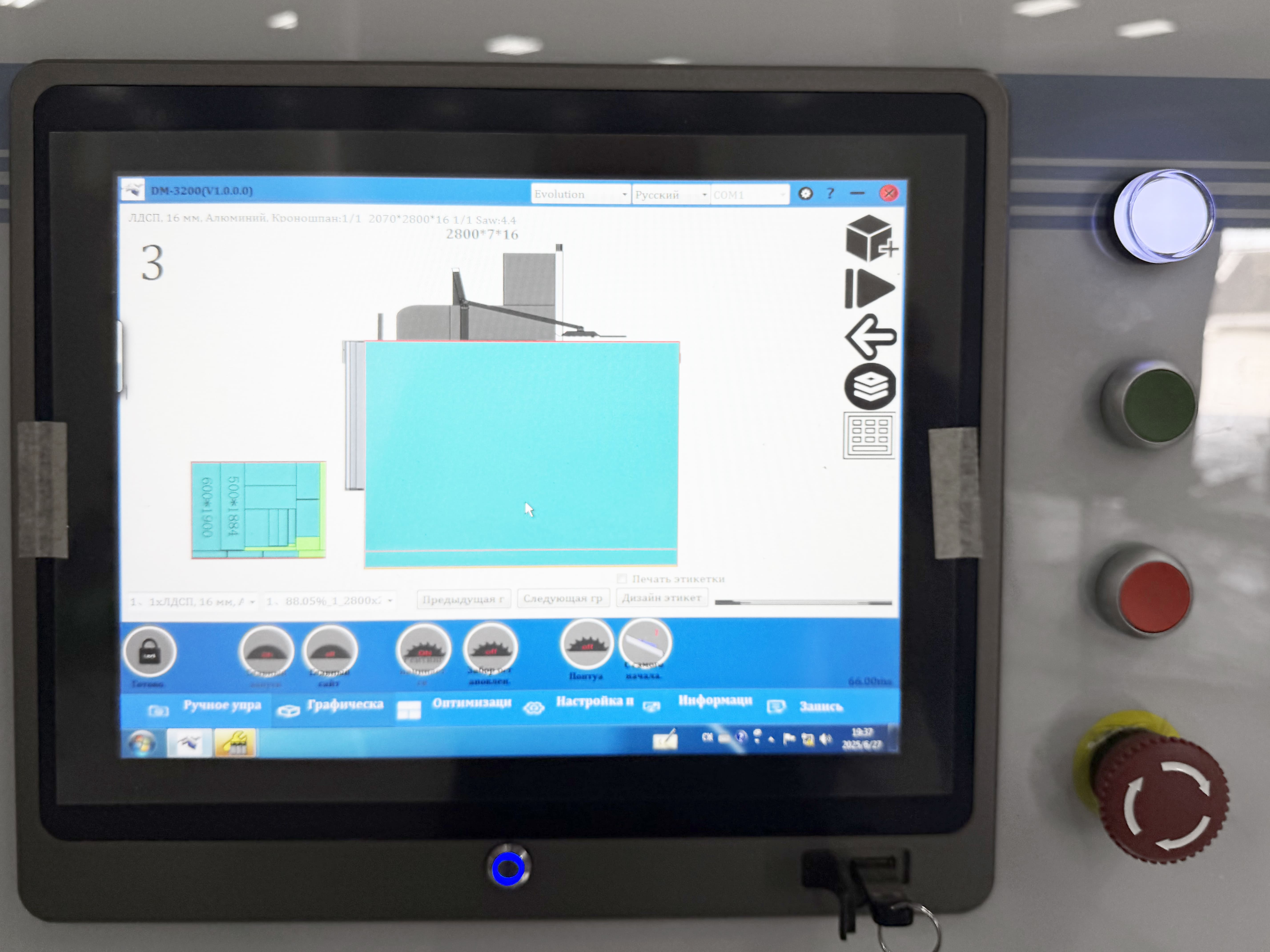 На всем этапе процесса раскроя вы видите на экране какая деталь в данный момент должна быть обработана и что еще осталось выполнить. Станок «подсвечивает» разными цветами задание и исполняемую деталь, а также помогает вам ориентироваться в процессе различными подсказками.