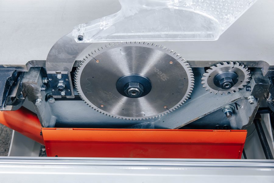 Литой корпус пильного узла обеспечивает высокую жесткость, виброустойчивость и надежность станка. Пильный узел имеет независимые двигатели на основную и подрезную пилы, и жестко смонтирован со станиной станка, что существенно снижает вибрацию узлов.