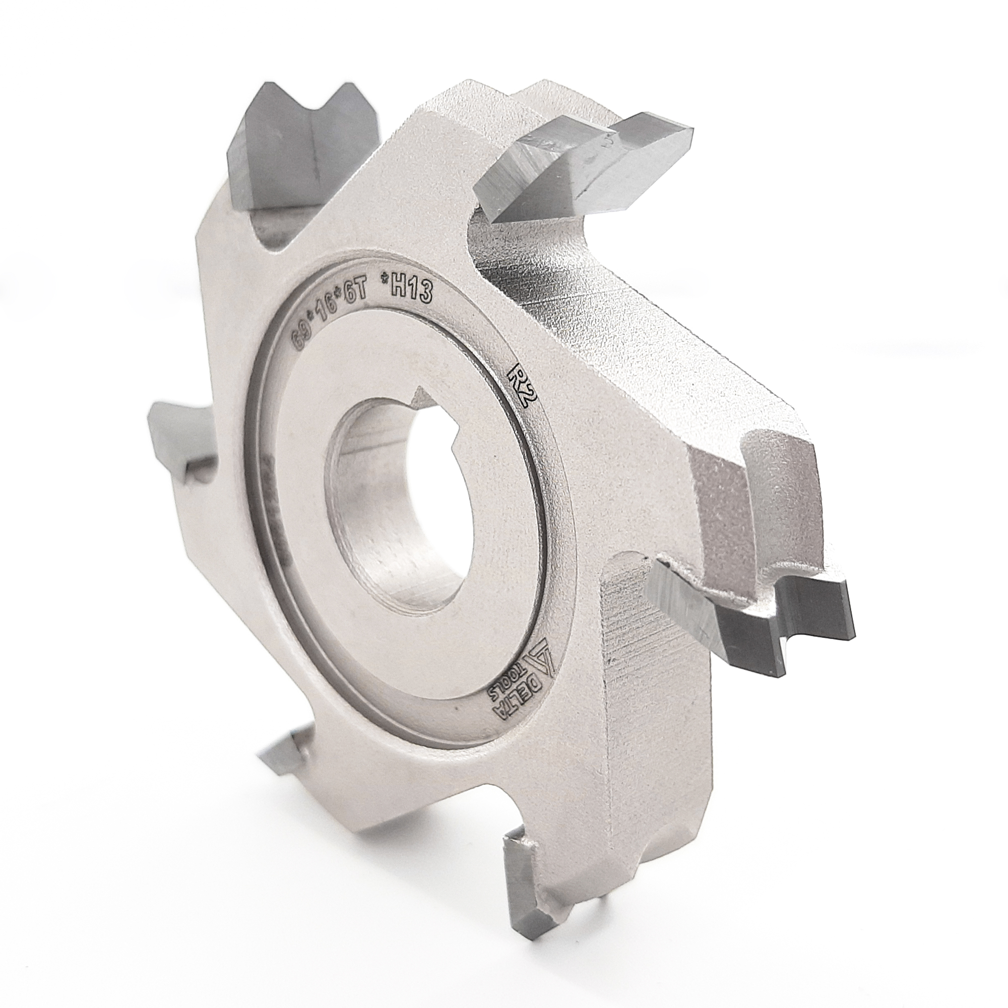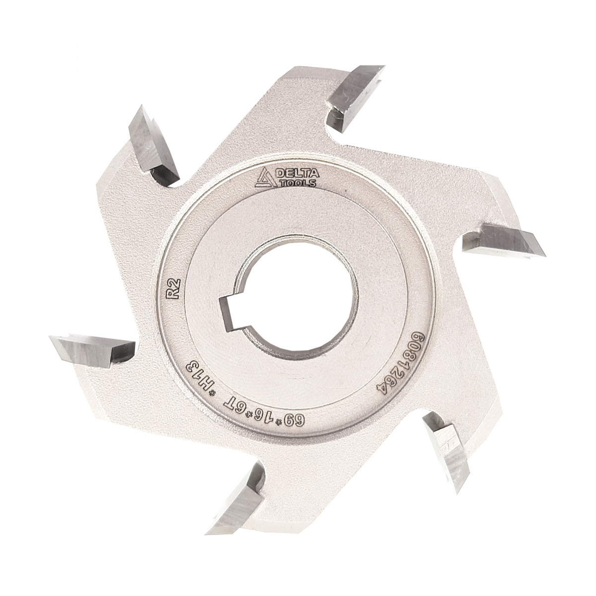 Фреза DELTA TOOLS 69x16x13 R2 Z6 FL для снятия свесов применяется для форматирования и фугования поверхности плитных заготовок на узлах предварительного фрезерования кромкооблицовочных станков.
