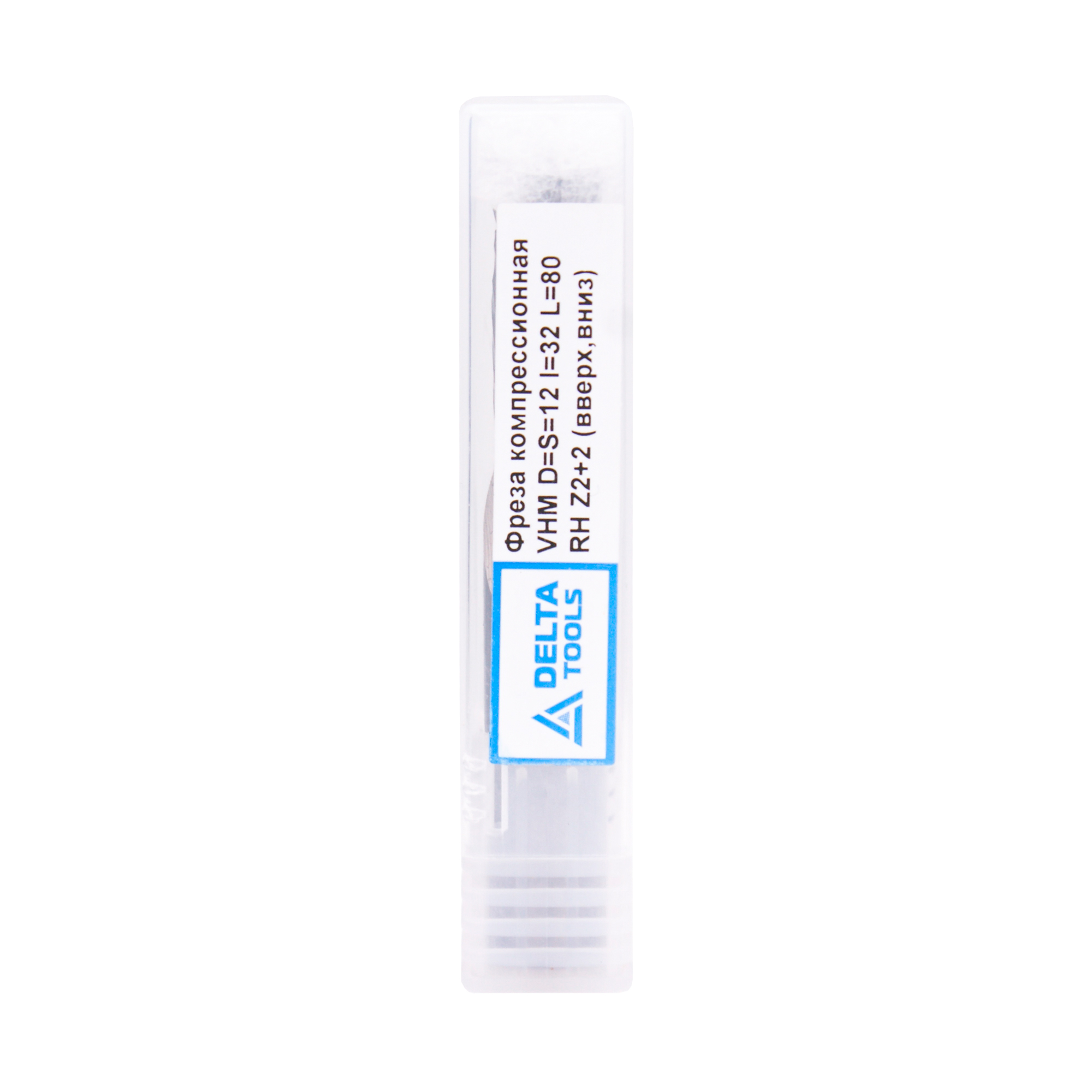 Фреза компрессионная DELTA TOOLS D=S=12 I=32 L=80 RH Z2+2 (вверх,вниз) Y90.12.032.080.12R