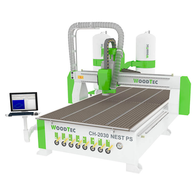 Рабочий стол, покрытый износостойким пластиком, имеет подготовку под вакуум, которая при подключении вакуумного насоса обеспечивает надёжное крепление заготовок.