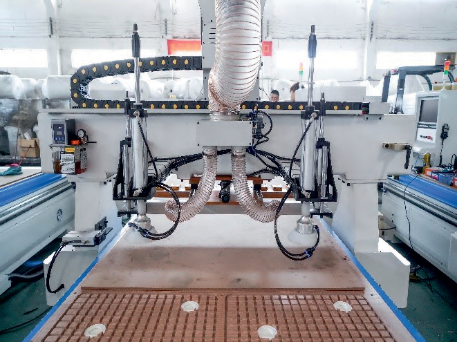Опционально станок может быть оснащен автоматической системой загрузки материала, представляющей собой вакуумные загрузчики работающие от пневматики и загрузочный стол. Опция может быть заказана в двух комплектациях, стол+загрузчики, либо отдельно загрузчики интегрированные на портале станка.