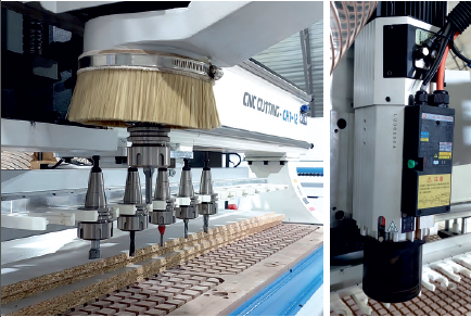 Станок оснащен шпинделем промышленной серии мощностью 9 кВт с оборотами 24000 об/мин. Способ смены инструмента: автоматический. Длительный срок службы, стойкость к нагрузкам, стабильная работа.