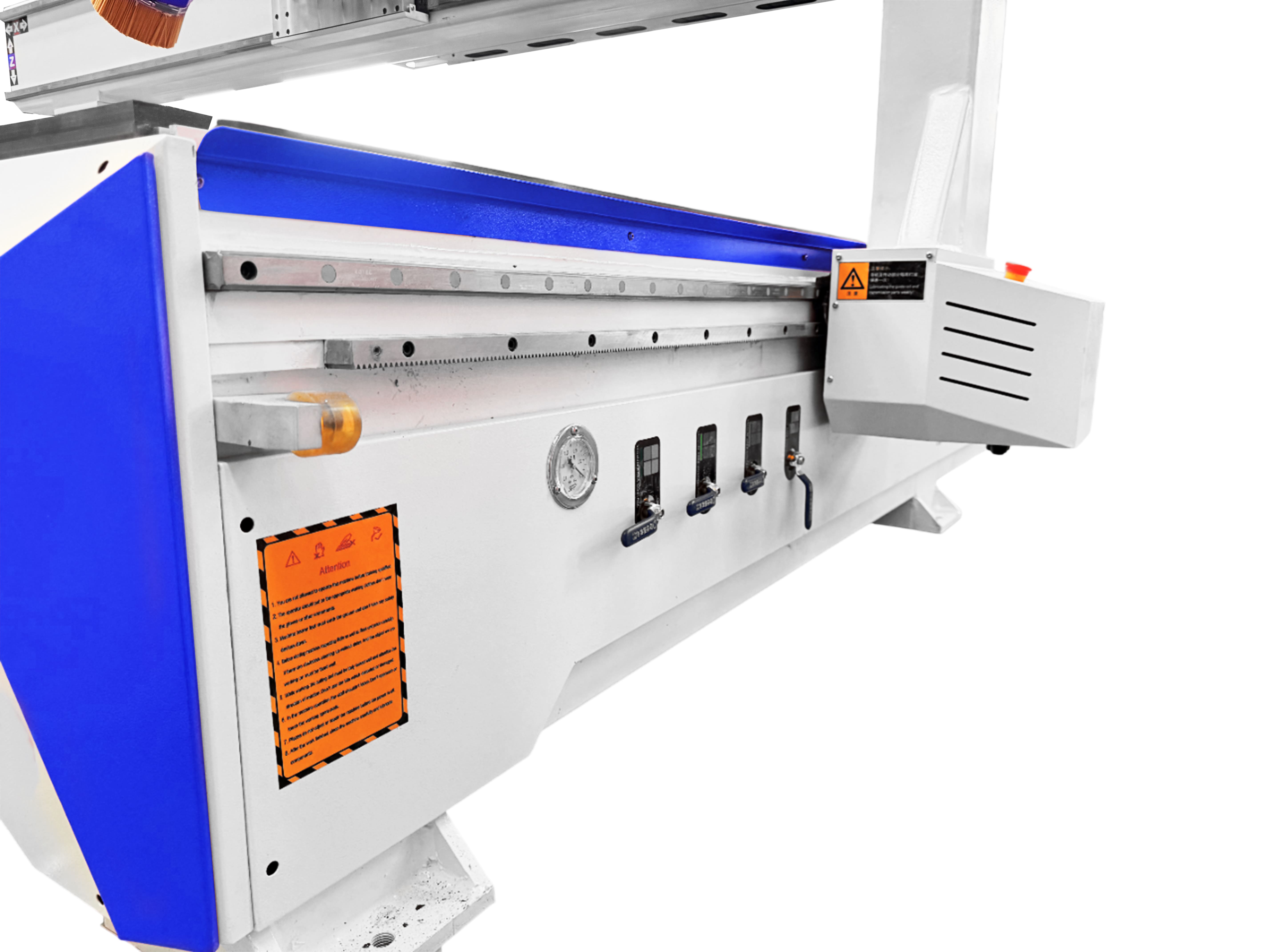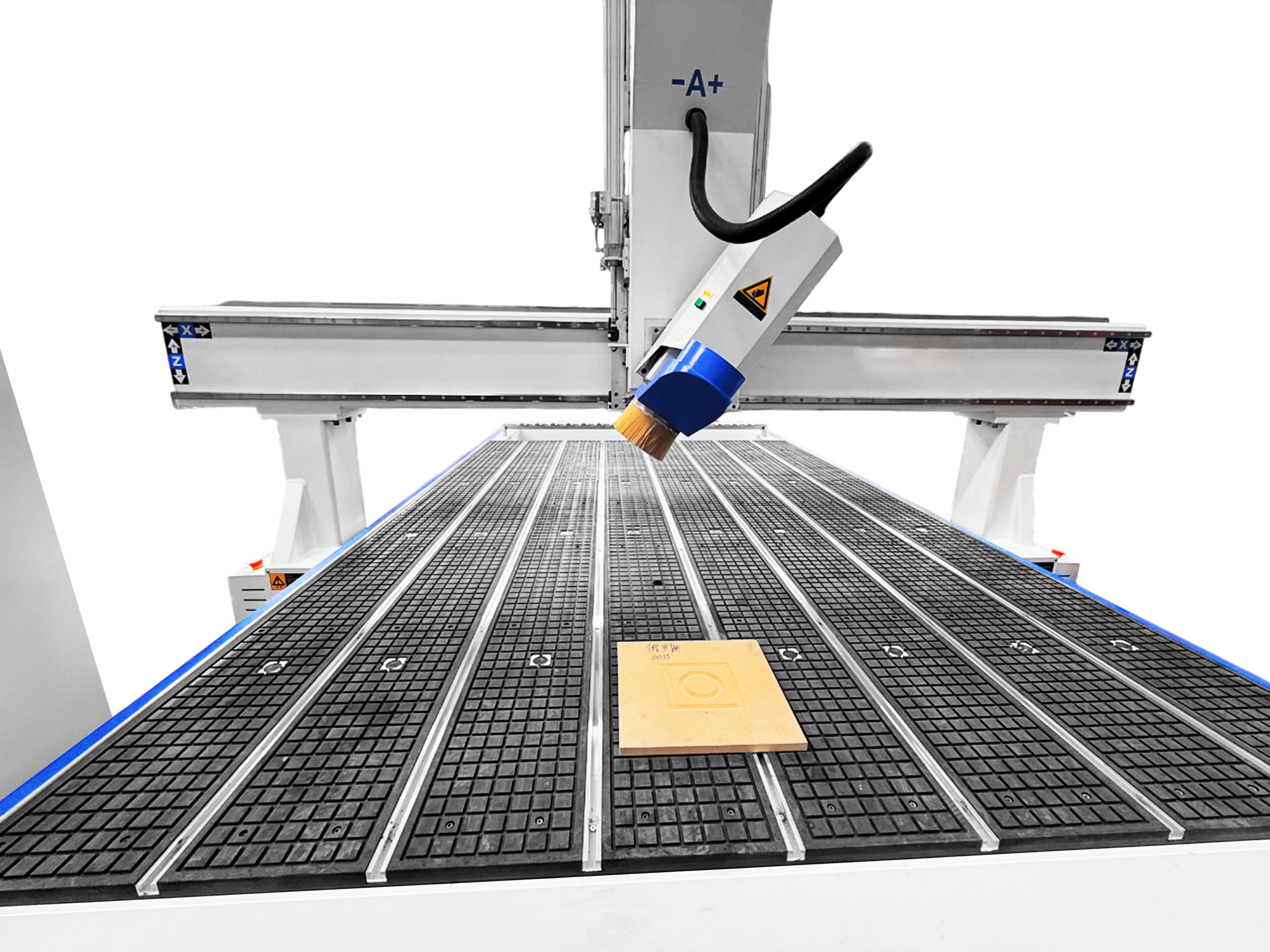 Серия станков X8 оснащена шпинделем с жидкостным охлаждением, имеющий 4-ю ось с ходом на 180° (влево/вправо + 90°), может использоваться для обработки изогнутых поверхностей, гнутых фасадов, моделей и т.п.
