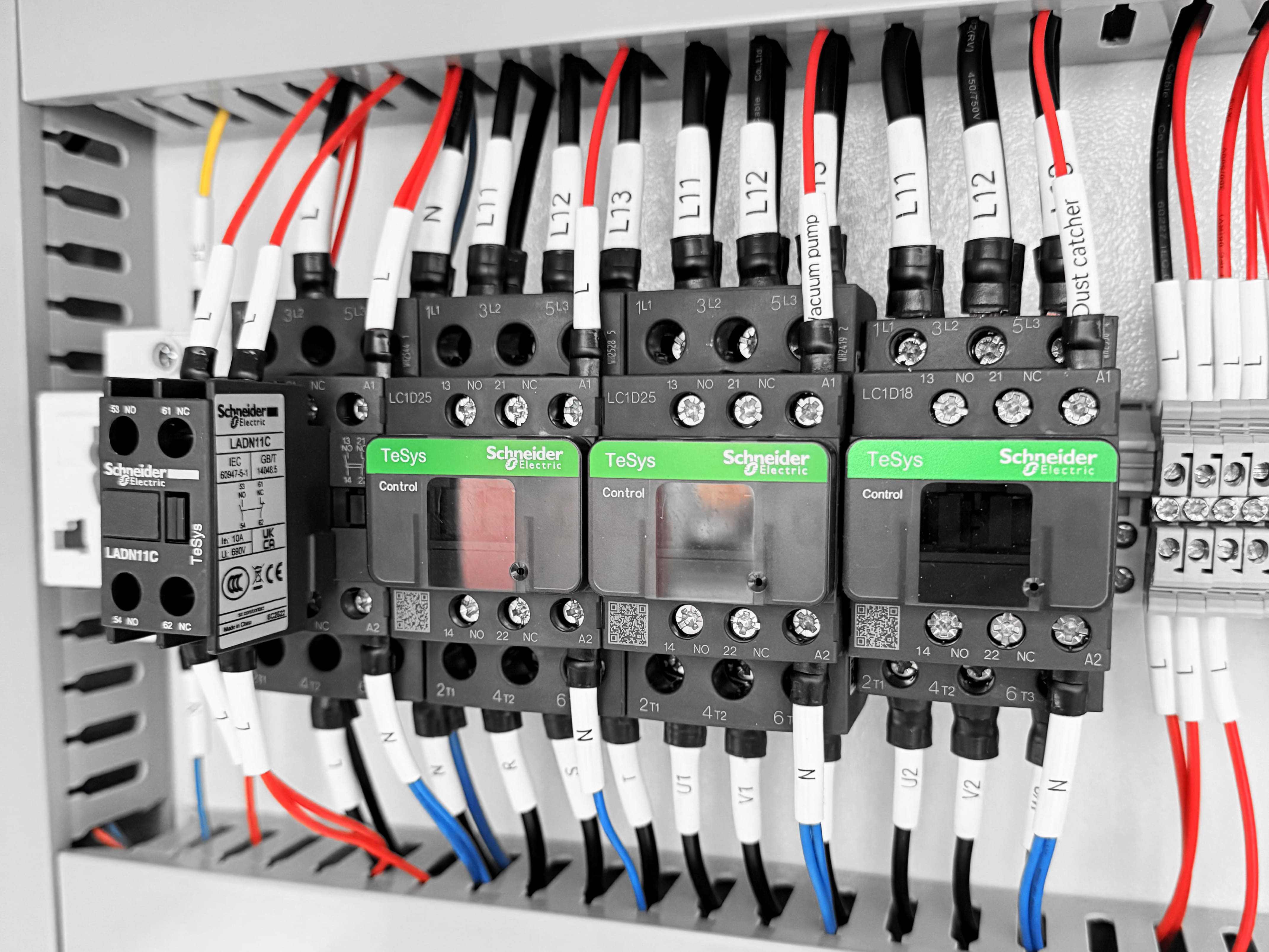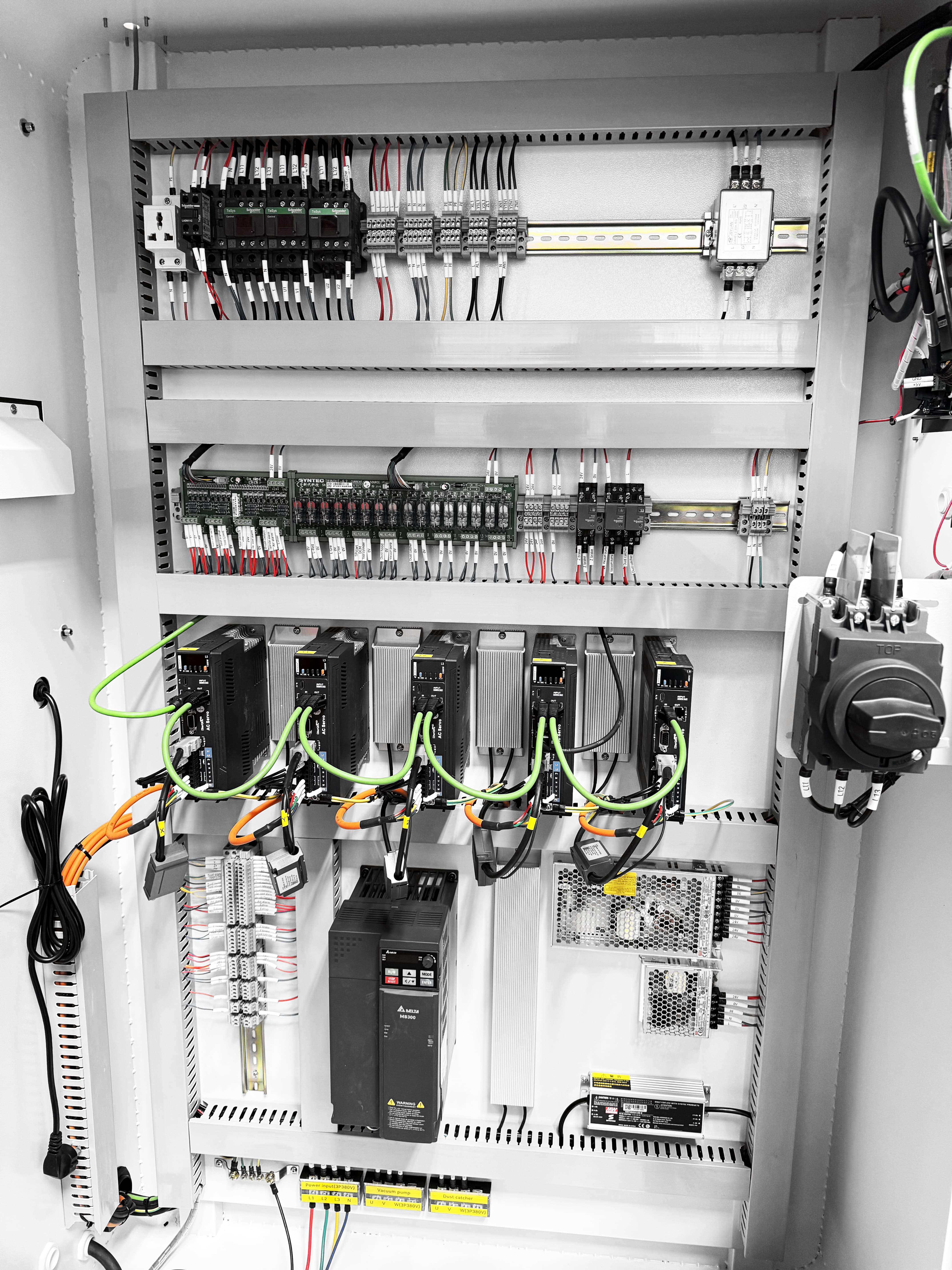 Собрана только из качественных электрокомпонентов от производителей Schneider, Delta и др. Все электрические компоненты и коммутации пронумерованы и обозначены согласно электрической схеме для удобства технического обслуживания.