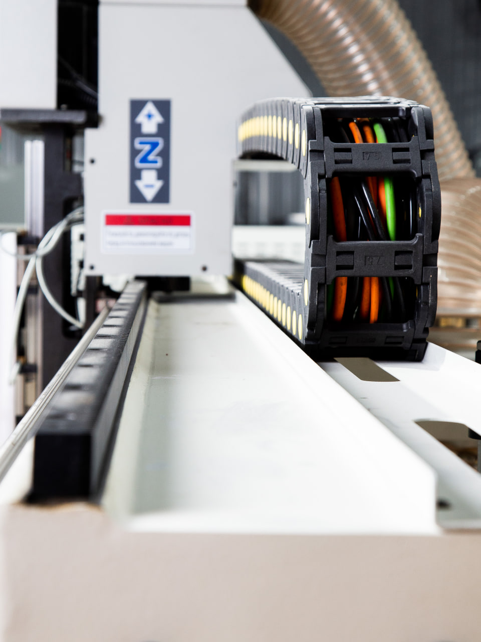 Станок оснащен программно-управляемым верхним прижимным валом, который удерживает деталь в процессе обработки, что в разы увеличивает фиксацию детали на столе и исключает ее смещение при фрезеровании.