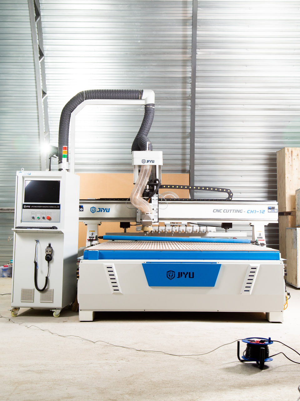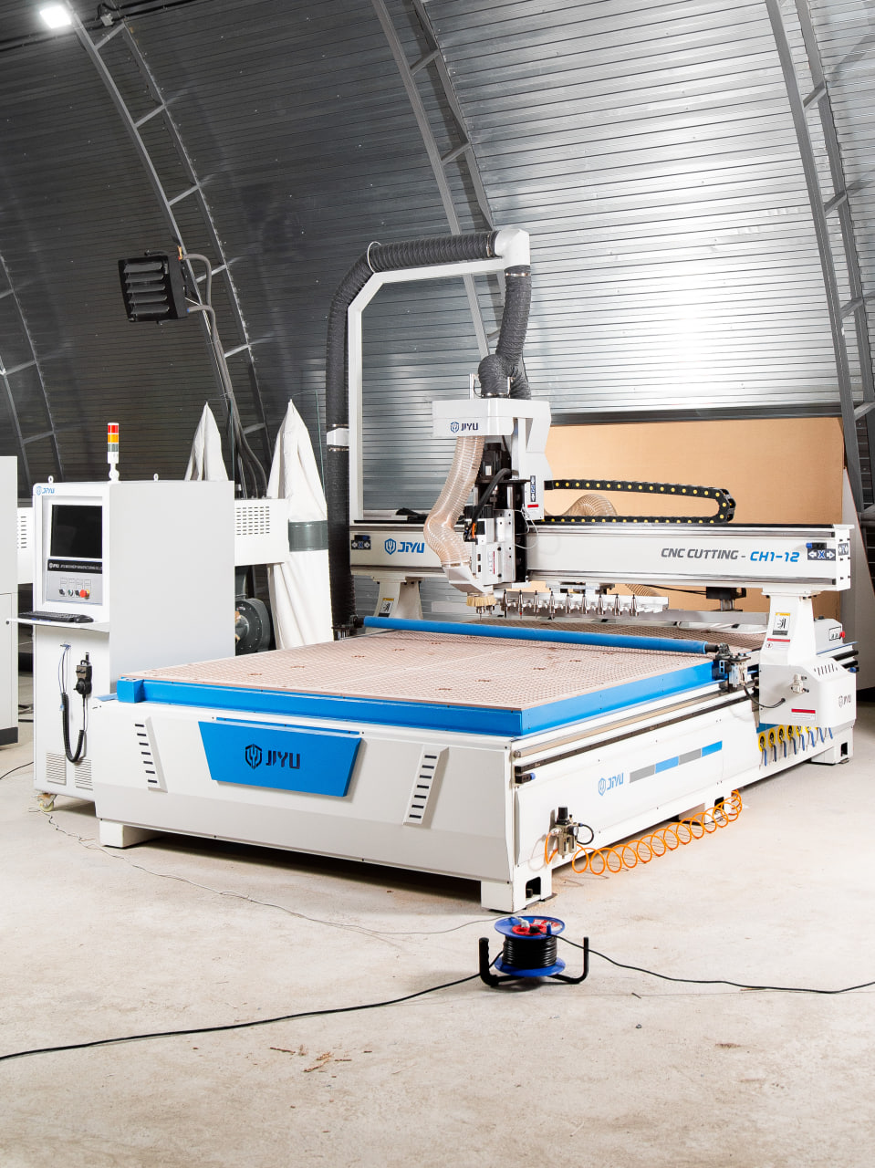 Для удобства загрузки обрабатываемых листов материала на стол предусмотрены специальные ролики. Кроме того, станок в базовом исполнении оснащен системой разгрузки, которая сталкивает обработанные детали и очищает стол от стружки. Всё это в целом ускоряет процесс производства.