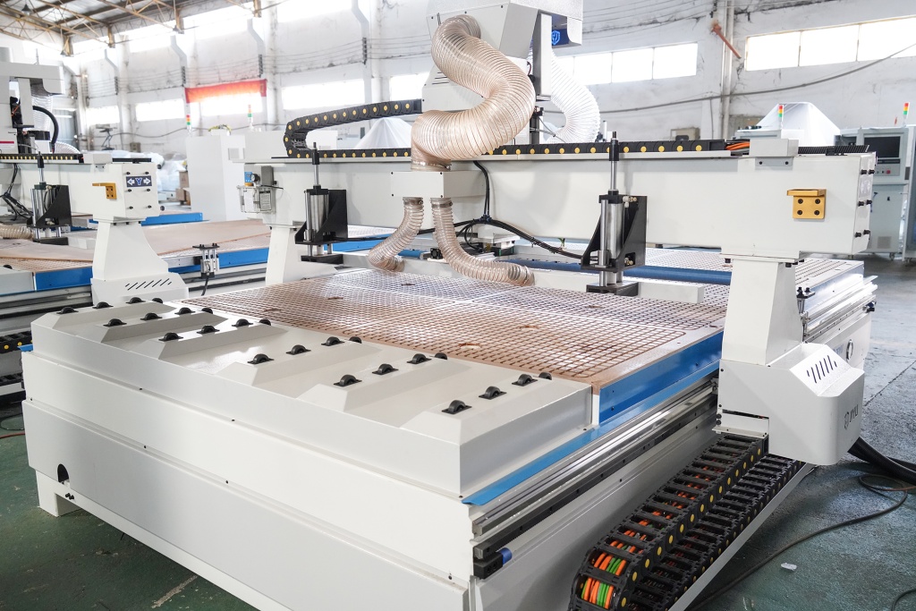 Опционально станок может быть оснащен автоматической системой загрузки материала, представляющей собой вакуумные загрузчики, работающие от пневматики и загрузочный стол. Опция может быть заказана в двух комплектациях, стол + загрузчики, либо отдельно загрузчики интегрированные на портале станка.