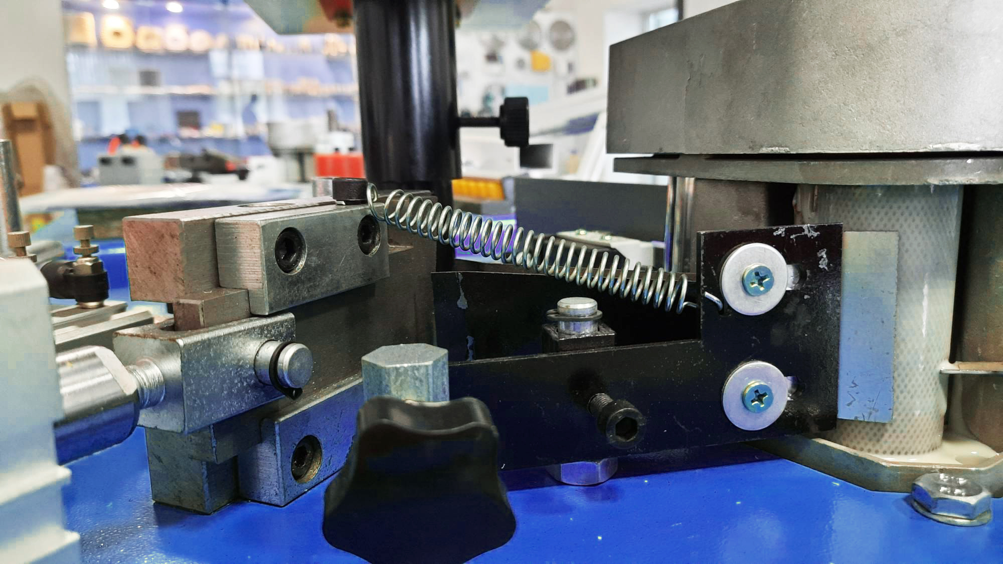 • - Пульт управления настройками станка на отдельной консоли сверху.