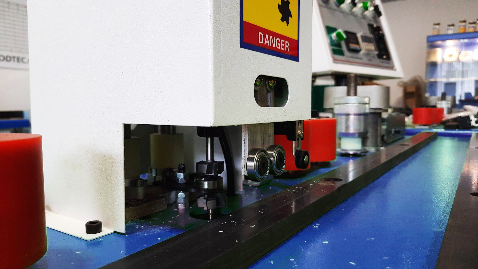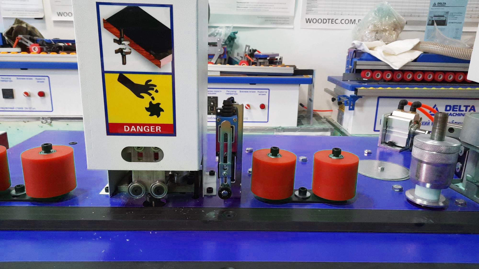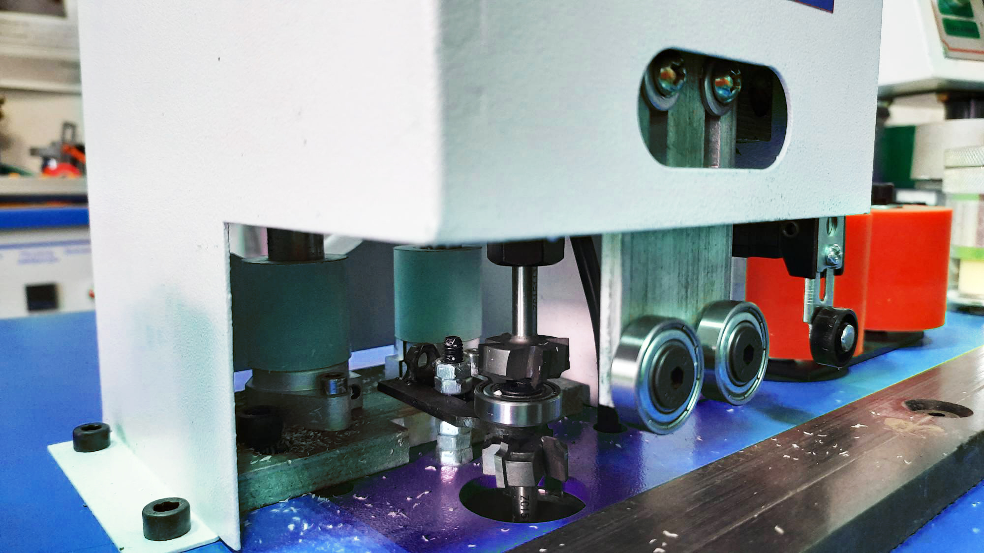 Не требуется настройка на толщину кромки. Кромочный канал состоит из четырех роликов. Производиться регулировка ограничительной планки только на ширину кромочного материала.