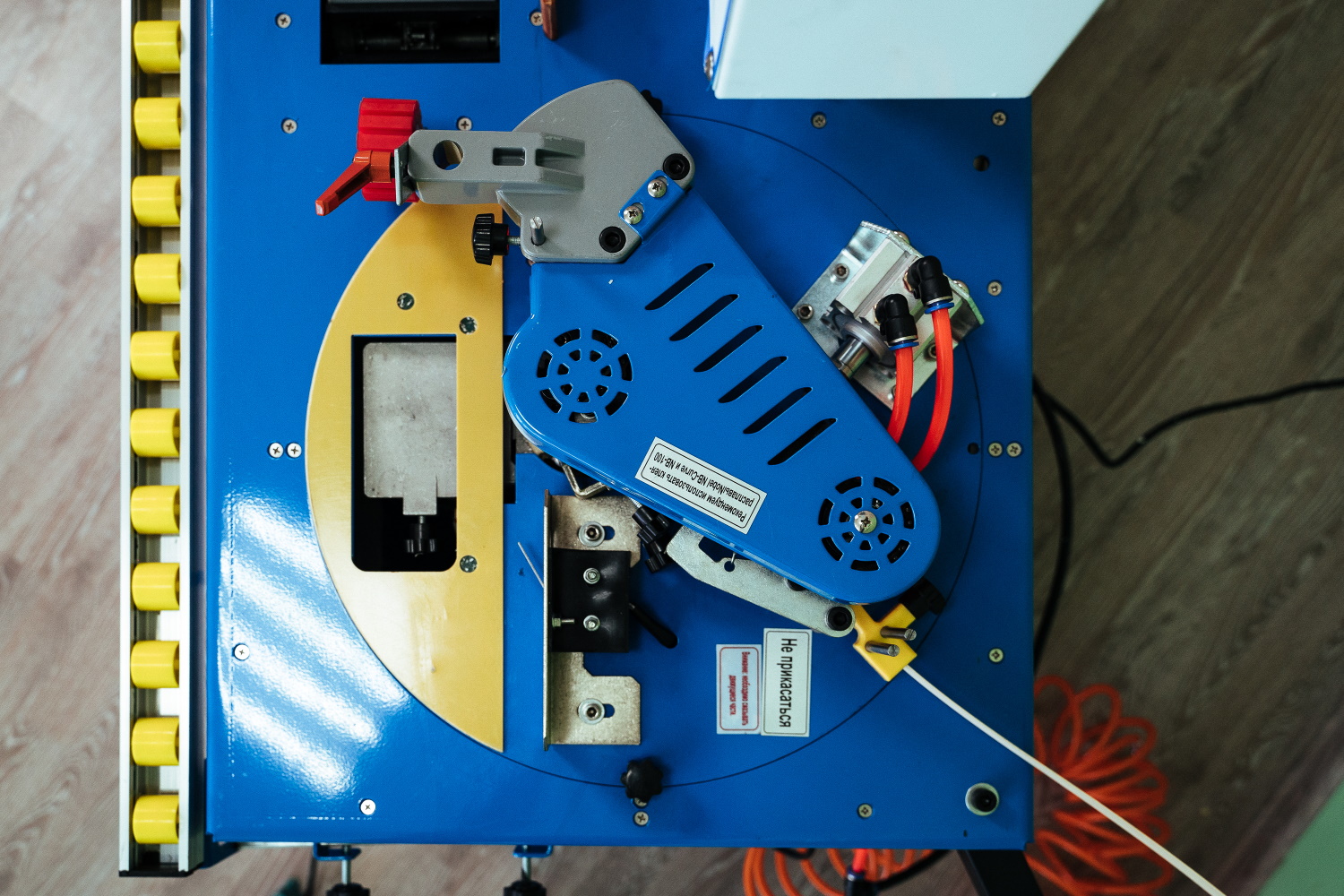 • - Гильотина для предварительной резки толстого кромочного материала из ПВХ или АBS, с макс сечением 2x40 мм.