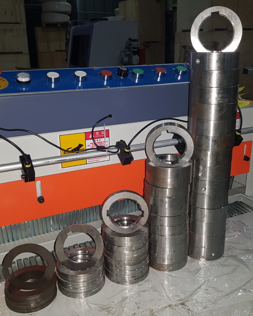 Многопильный станок предназначен для роспуска доски на ламели нужной ширины. На вал станка устанавливается от 2 до 8 пил, ширина распила регулируется проставочными кольцами 2,5, 10, 15,20, 50 мм.