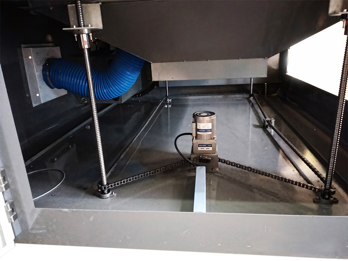 Ячеистый или ламельный стол с размером поля обработки 1200х900 мм.