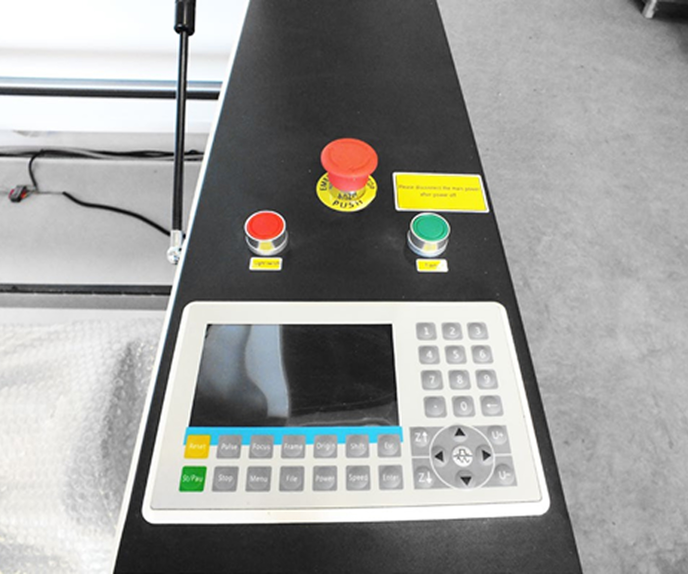 Пульт управления станком c ж/к экраном и кнопочным набором находится на передней правой панели станка. Контроллер управления позволяет выбрать русский язык для управления операциями.