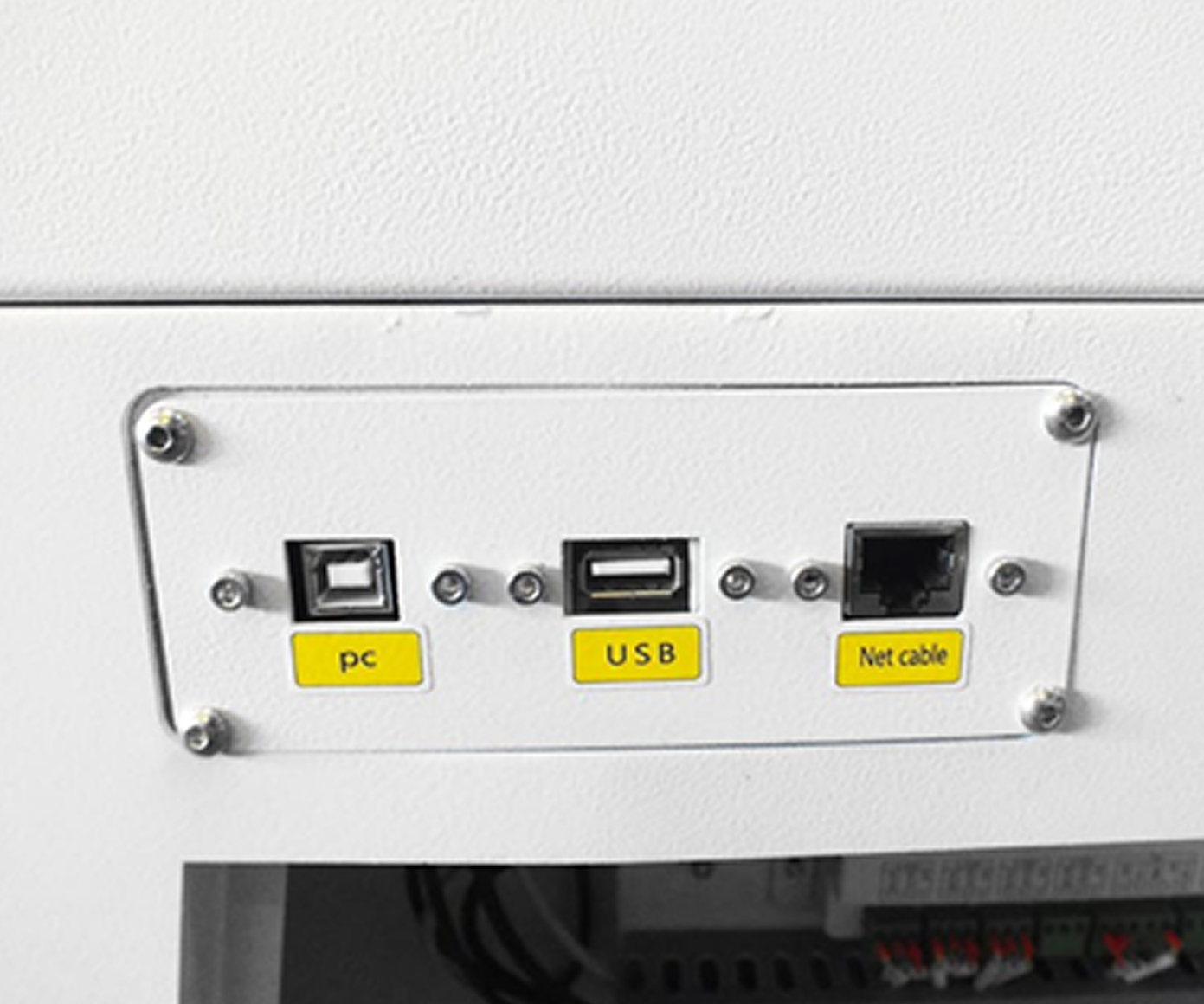 Справа на корпусе станка предусмотрены разъемы для соединения с внешними устройствами.