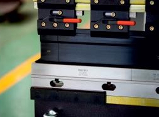 Станок оснащен быстросменной системой фиксации инструмента. Наиболее подходит при гибке небольших заготовок сложной формы, с одновременной установкой нескольких разных сегментов пуансонов.