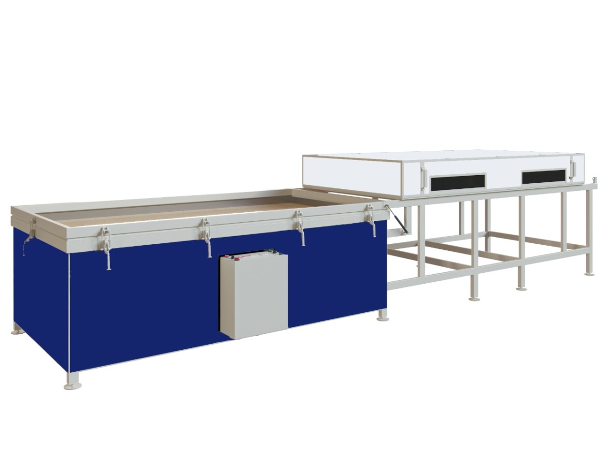 Вакуумный пресс KDM-3000 ОТК в модификации с откатным термомодулем отличается от других прессов, производимых нами, тем, что термомодуль в данном вакуумном прессе откатывается в сторону (в "зону покоя"), предоставляя полный доступ к рабочему столу со всех сторон.