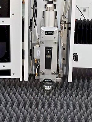 Станок оснащён лазерной головкой METALTEC, с автономным контроллером слежения за расстоянием от поверхности листа до лазерной головки, который позволяет обрабатывать неровные поверхности, а встроенная система водяного охлаждения обеспечивает стабильную работу лазерной головки.