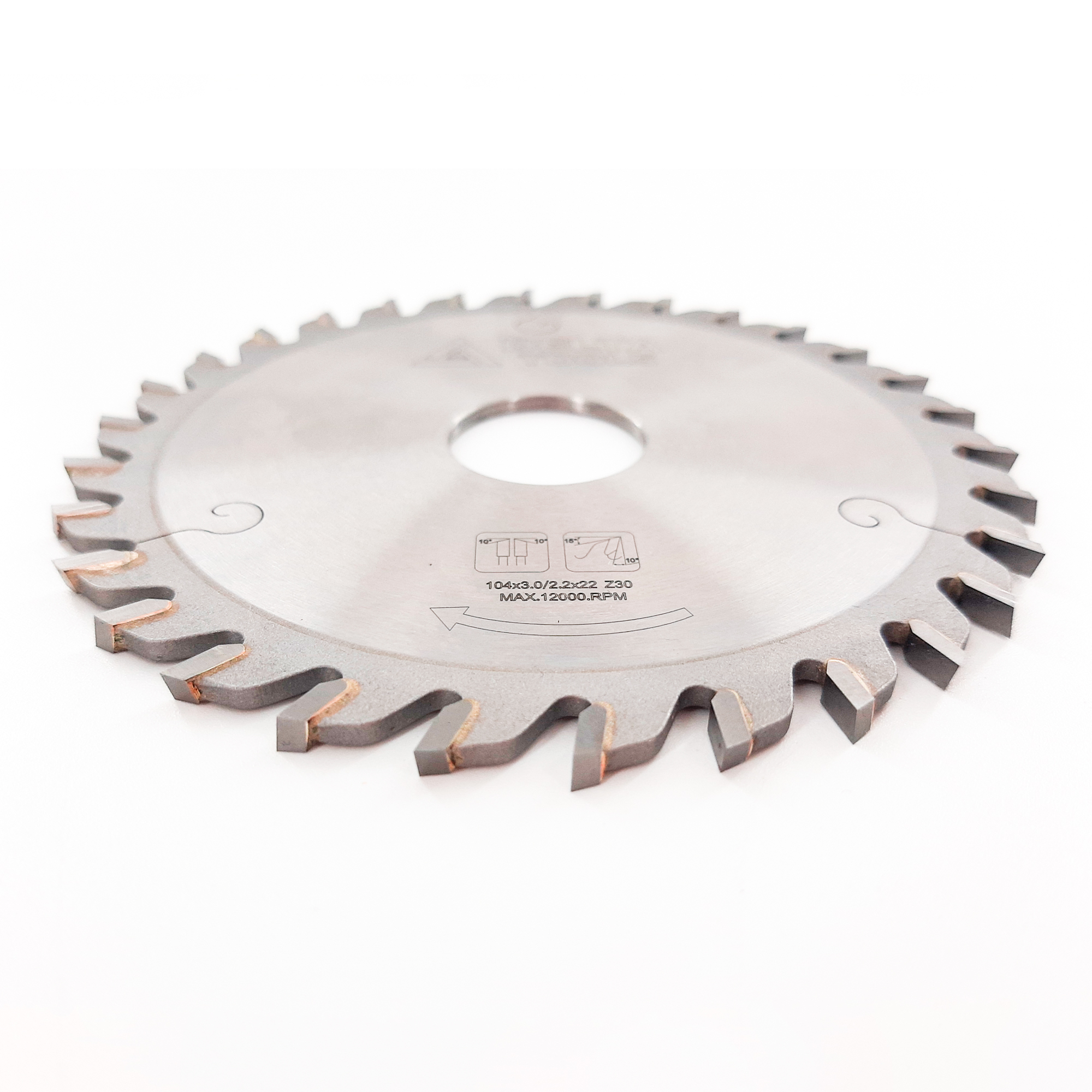 Пила торцовочная DELTA TOOLS 104x22 Z=30 предназначена для обрезки кромки по торцам заготовки, при обработке на кромкооблицовочных станках.