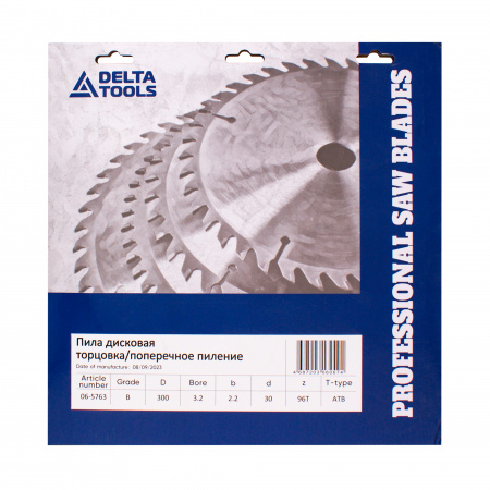 Пила дисковая DELTA TOOLS 300х30х3.2/2.2 Z=96 WZ торцовка/поперечное пиление с твердосплавными напайками предназначена для поперечного распила и торцовки древесины, листов фанеры, оргалита (ДВП).