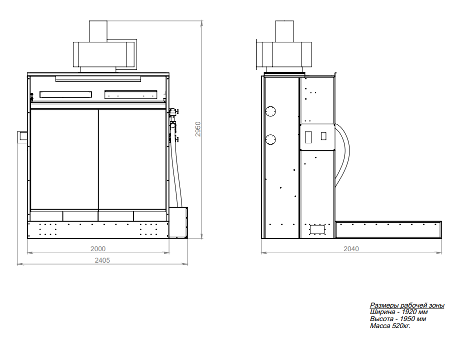 Размер рабочей зоны ДxГ: 1920х1000 мм