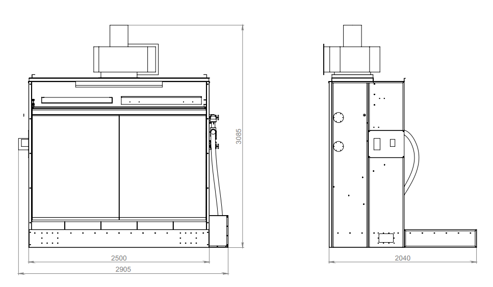 Размер корпуса с вентилятором ДхГхВ: 2940х2050х3130 мм