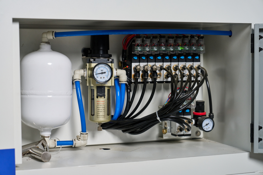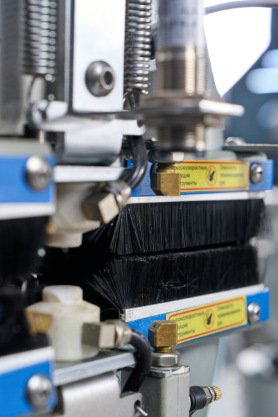 Для получения максимально качественного результата приклеивания кромки станок оборудован форсунками для подачи разделительной жидкости в зону контакта плоскости заготовки и свеса кромки.
