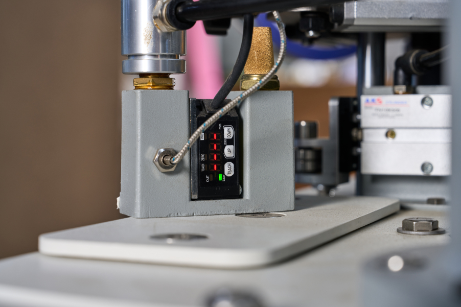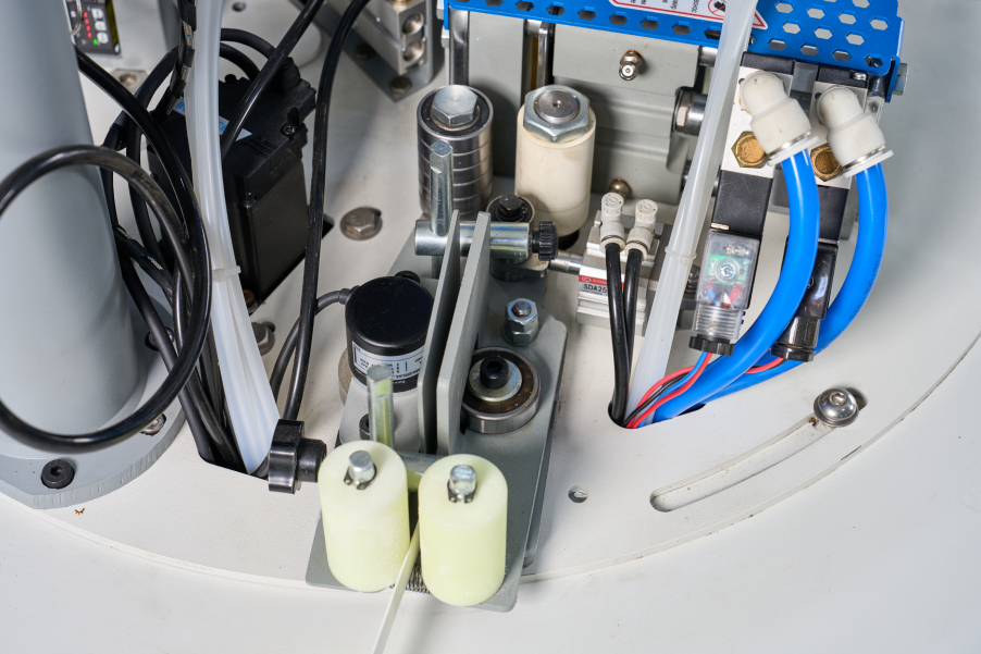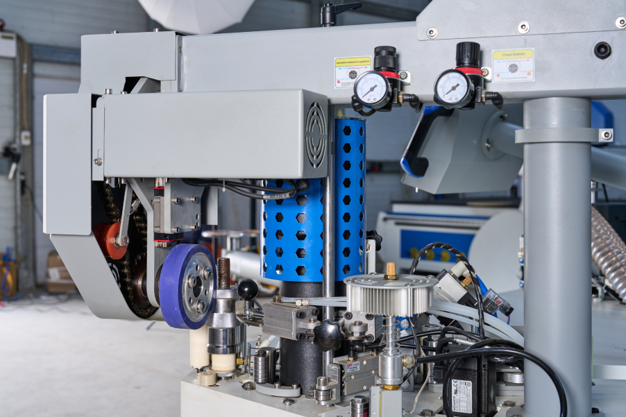 Система подачи кромочного материала с энкодером, позволяющая подавать точное количество кромки в зону приклеивания (параметр задается с пульта в мм).
