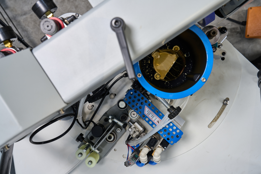 Станок оснащен универсальной клеевой ванной емкостью 2600 мл позволяющей использовать при работе клей расплав ЭВА или PUR клей в зависимости от задач.