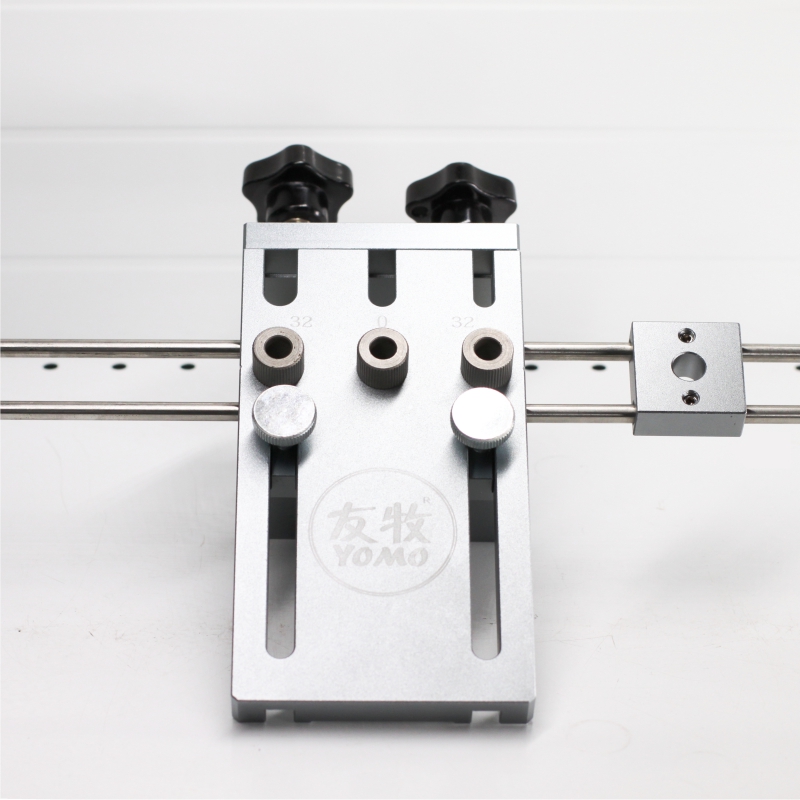 В комплекте имеются сменные втулки под различные диаметры сверел. Для сверления в торец имеется 3 отверстия с шагом 32 мм. В комплекте сверла 6мм, 8мм, 10мм, 15мм.