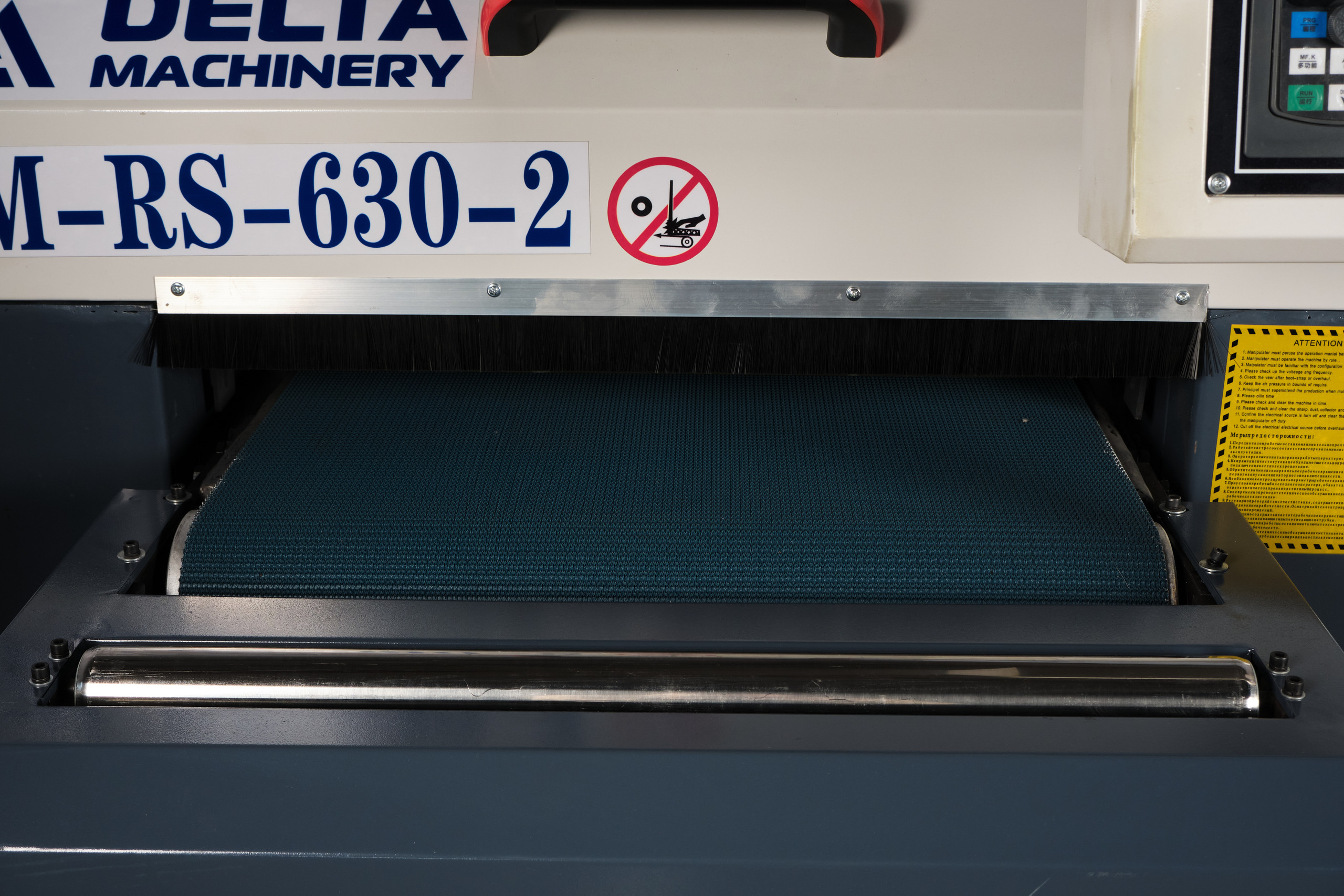 Подающий стол оснащен износостойкой конвейерной лентой. Скорость подачи - бесступенчатая от 5 до 20 м\мин