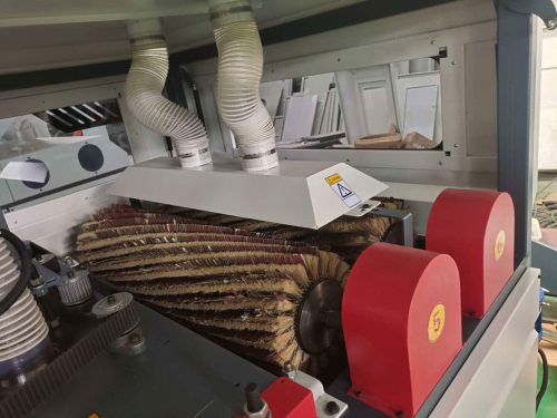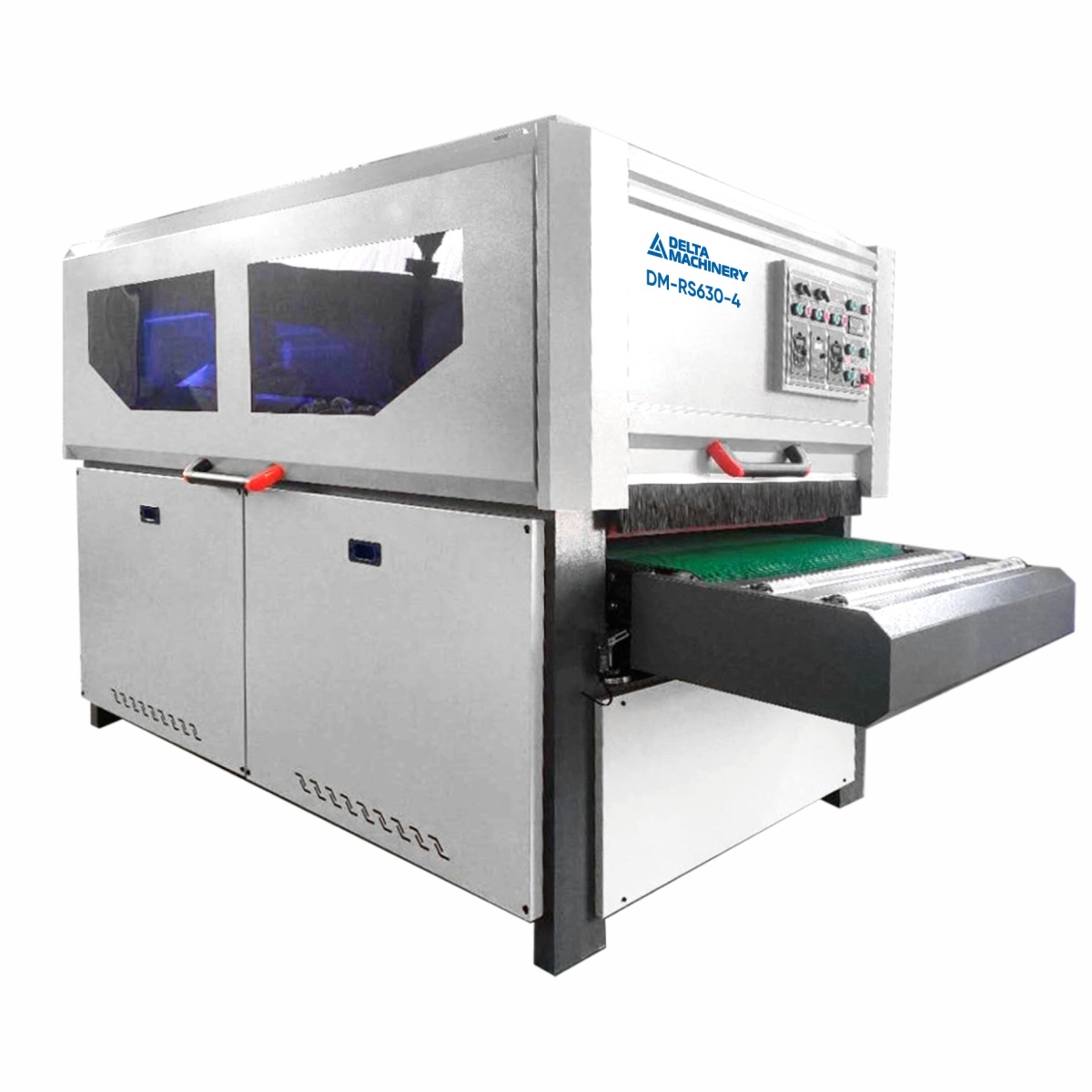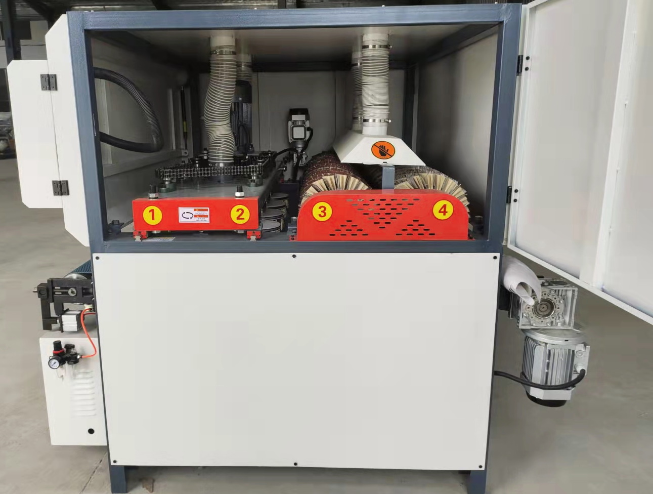 Вторым этапом заготовка обрабатывается двумя продольными шлифовальными блоками (два барабана во всю ширину рабочего стола, с щетками и абразивными вкладышами, расположенными по спирали)