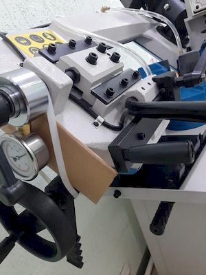 Натяжение ленточнопильного полотна осуществляется удобным вентилем, степень натяжения видна и контролируется на специальном индикаторе.