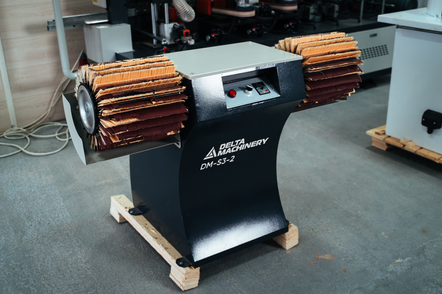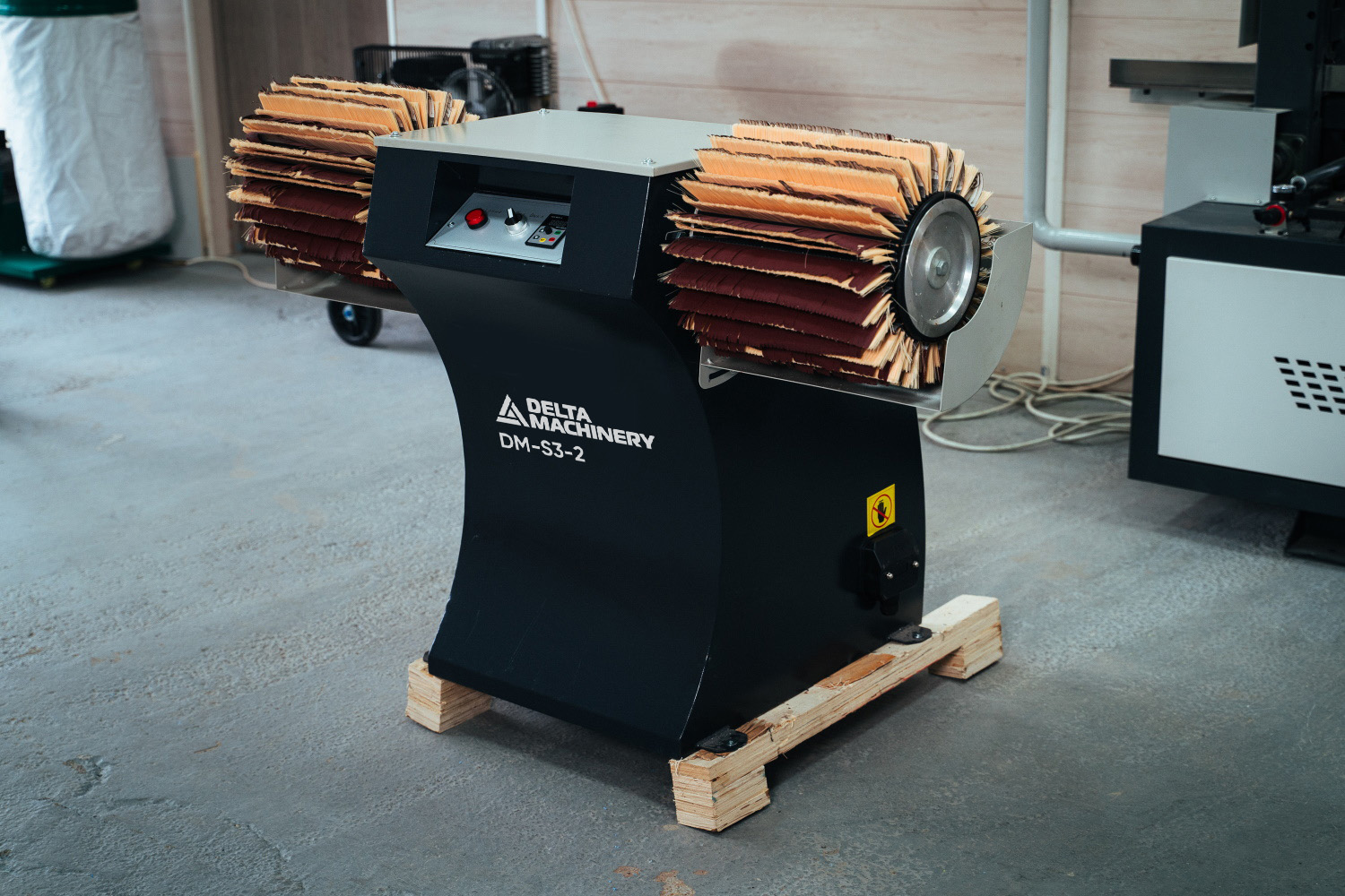Станок оснащен двумя горизонтальными барабанами. Простая и удобная смена абразивных вкладышей и поддерживающих сизалевых щеток.