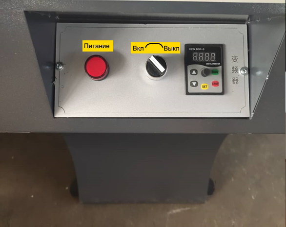 Пульт управления представляет собой контролер для регулировки частоты вращения и 1 пакетный выключатель для включения/выключения двигателя мотора вращения шлифовального узла, кнопку аварийной остановки