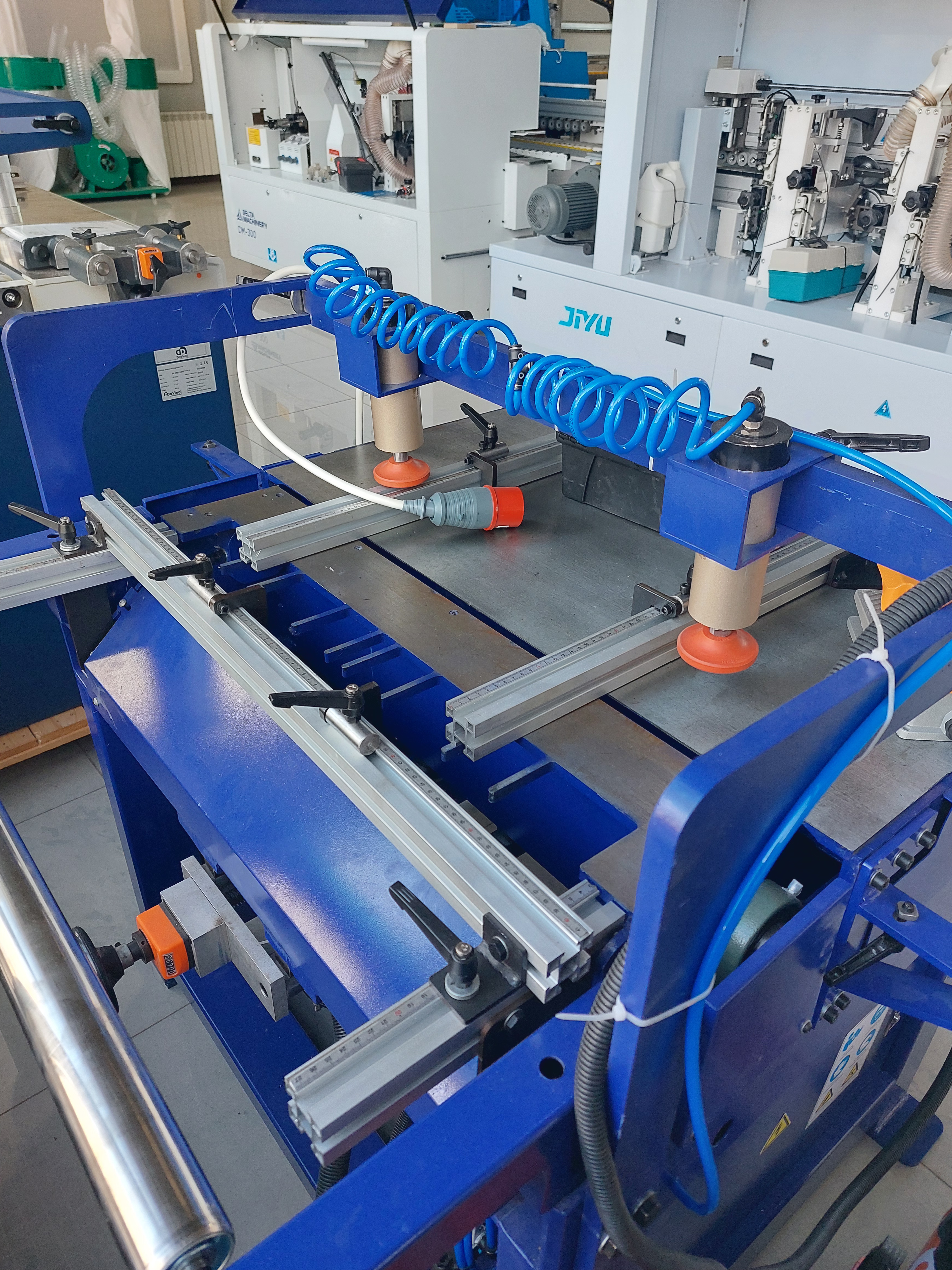 Пневматические прижимы для быстрого фиксирования заготовки исключают необходимость ручной регулировки.