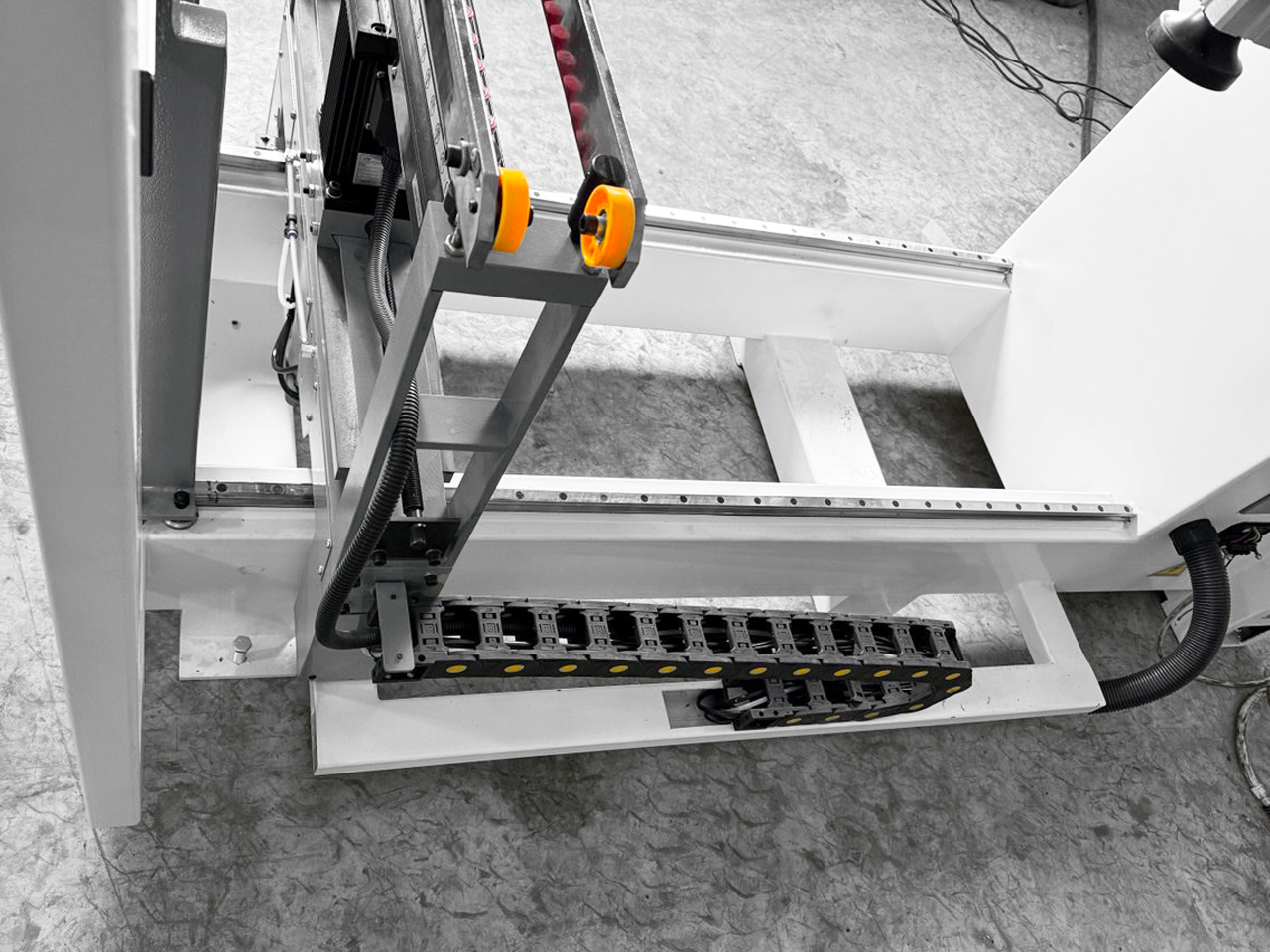 Все силовые и управляющие кабели и шланги скоммутированы в специальной трек-шине, это обеспечивает надежную и безопасную работу сверлильных групп при постоянном пере-мещении на разные размеры.