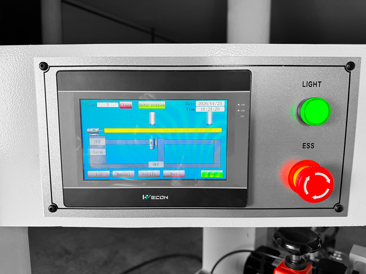 Для обеспечения дополнительной безопасности при работах, на передней части станка, по всей ширине рабочего места оператора проложен аварийный торс отключения станка, это поможет избежать травм или брака при возникновении нештатной ситуации. Оператор всегда сможет быстро произвести аварийное отключение.