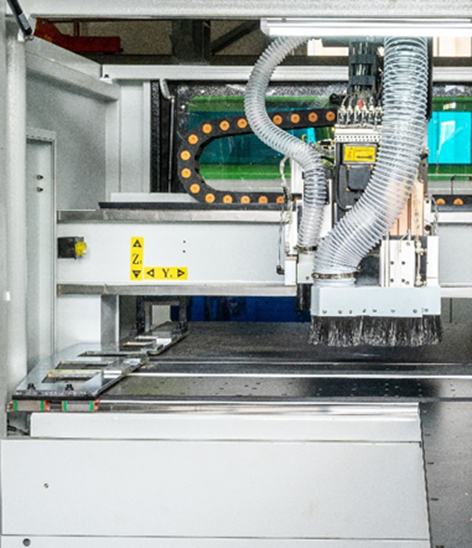 Использование промышленного управляющего компьютера, идеально сочетающего в себе различные программы для оптимизации карт сверления и фрезеровки, возможность работы со сканером штрих-кода, в разы ускоряет производительность технологического процесса. Выполнение любых карт присадки с шести сторон за один проход детали, фрезерование прямых и криволинейных пазов с помощью фрезерного узла.