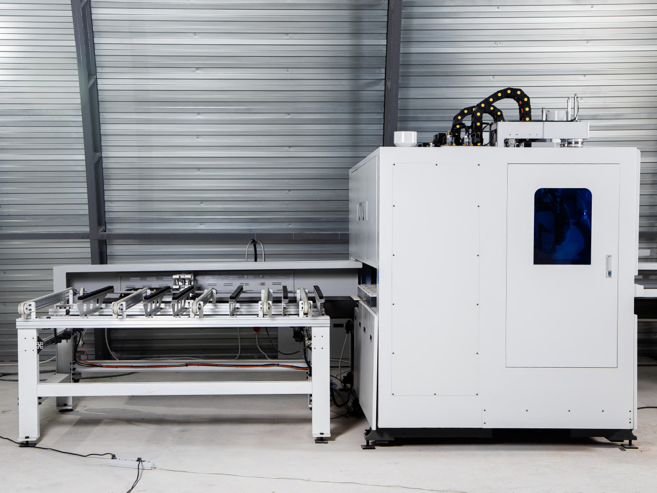Надежная конструкция из двух пневматических захватов надежно удерживает и точно перемещает деталь в процессе обработки.