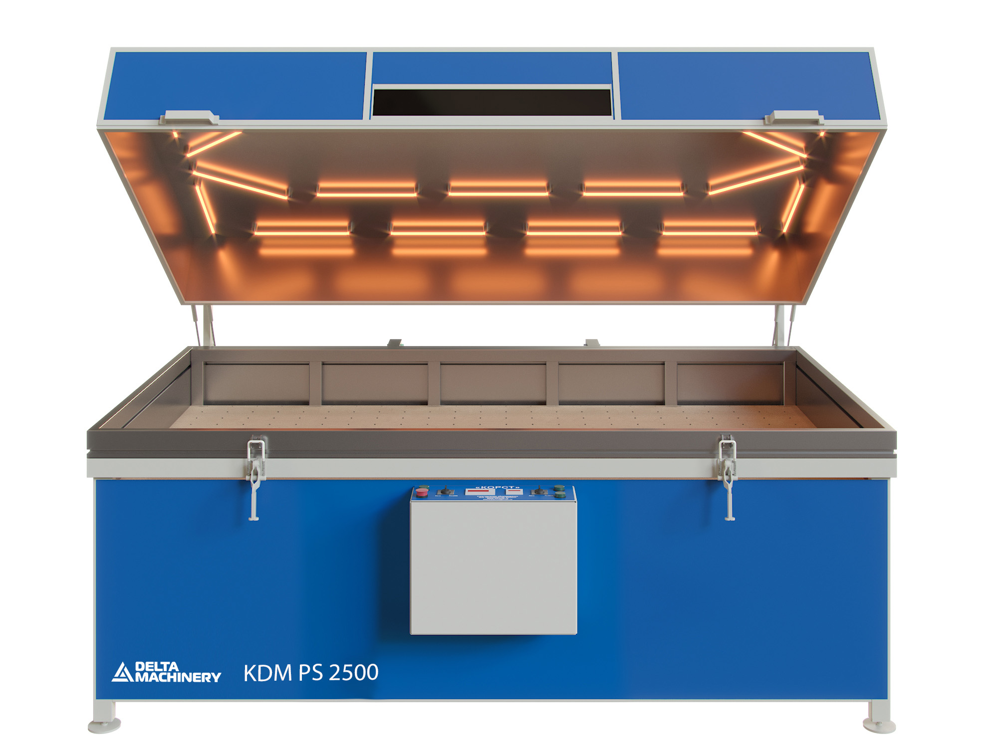 Вакуумный пресс KDM PS-2500 в модификации с откидным термомодулем отличается от других прессов, производимых нами, тем, что для открытия термомодуля в данной модификации используются газовые упоры.