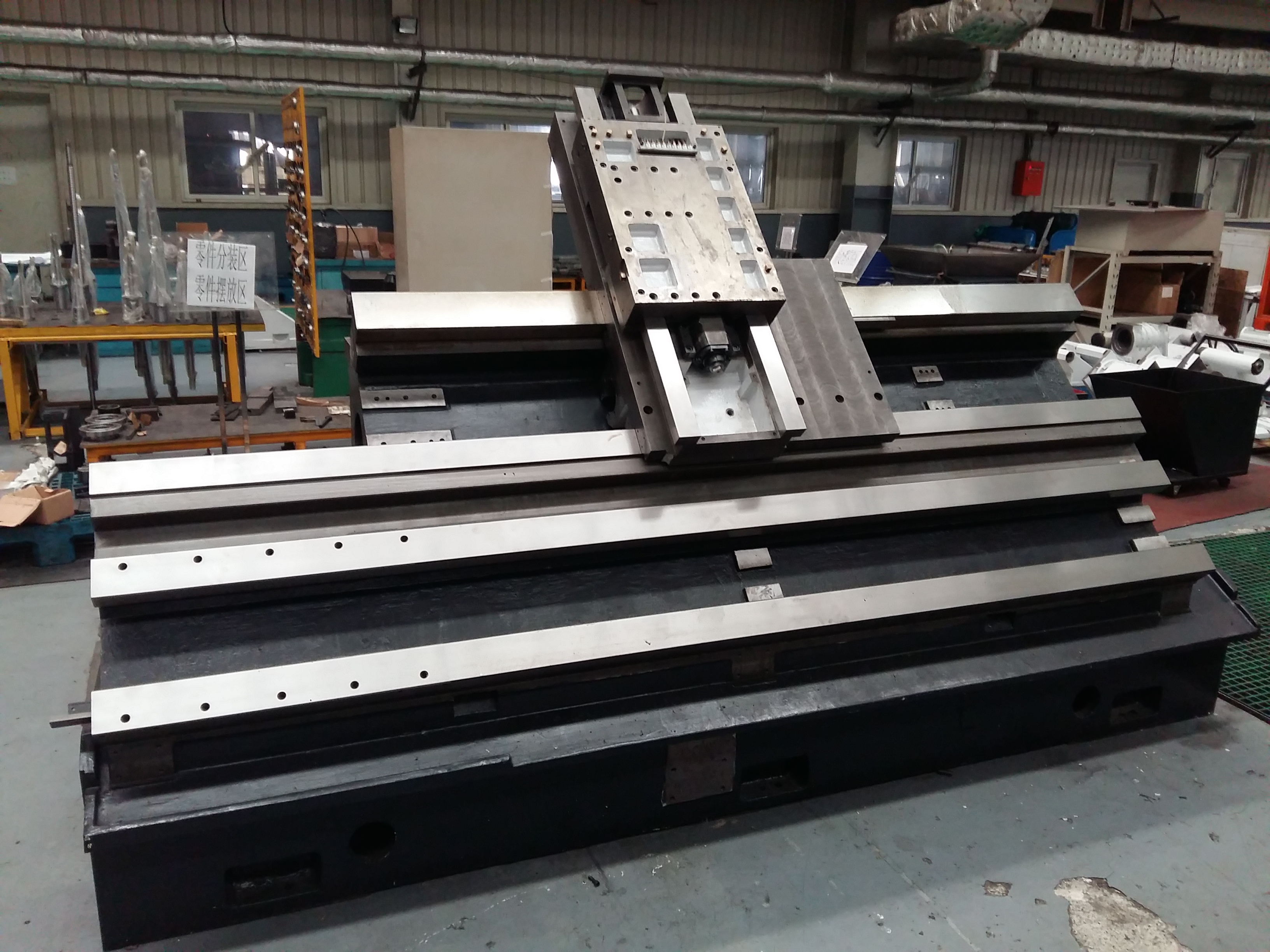 Цельнолитая наклонная станина отлита из чугуна. Угол наклона станины 45°. Такая конструкция станины обеспечивает лучшую устойчивость, повышенную жесткость, гашение вибраций и точность при обработке. Так же наклонная станина занимает меньшую площадь, что позволяет легко удалять стружку и очищать станок.