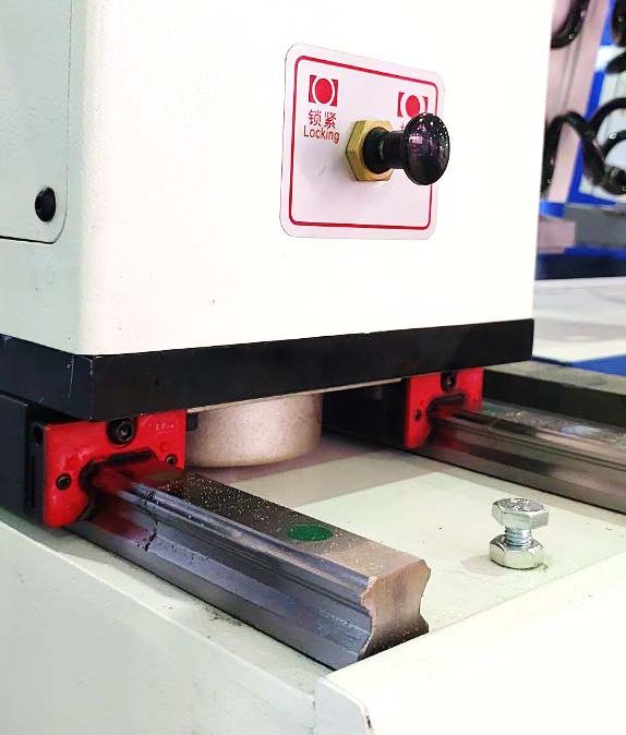 В зависимости от глубины обработки материала, прижимная траверса может быть установлена на необходимую позицию. Фиксация траверсы производится с помощью пневматического тормоза.