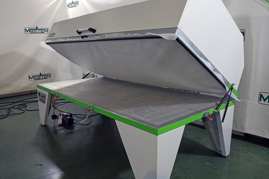 Мембранно-вакуумный пресс Master Veneer предназначен для работы со шпоном. Размер рабочей поверхности стола 1400х2900 мм., позволит шпонировать длинные детали. Нагревательный модуль мембранно-вакуумного пресса Master Veneer сконструирован с учетом возможности покрытия шпоном гнутоклееных изделий, высотой до 600 мм, при этом нагревательный модуль будет полностью закрыт, в отличии от аналогичных прессов, которые позволяют покрывать заготовки 600 мм только с открытым нагревательным модулем, путем холодного прессования. Мембранно-вакуумный пресс Master Veneer оснащен надежным вакуумным насосом Busch, производство Германия.