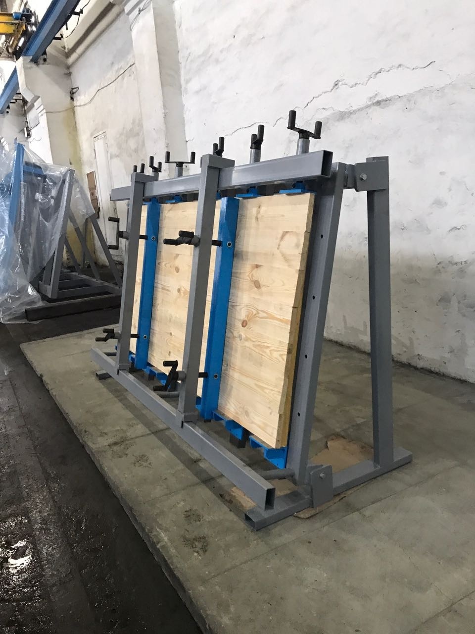 10 пневматических вертикальных струбцин, для удерживания заготовок в сжатом состоянии во время склеивания;